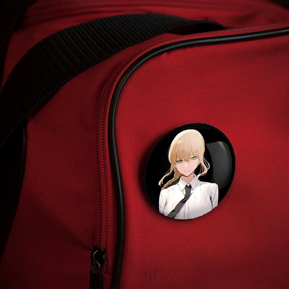 پیکسل 44 میلی متری ماکیما انیمه مرد اره ای Chainsaw Man خندالو با روکش سلفون حرارتی مات مخملی ضدخش و قطعه پشتی رنگی تولید شده است.پلاستیکی پشت پیکسل با سوزن یک تکه ثابت و بدون لغزش و جا به جایی، ایستایی بسیار بهتری نسبت به پشتی فلزی پیکسل دارند که این مهم در تولید این محصول نیز رعایت شده است.