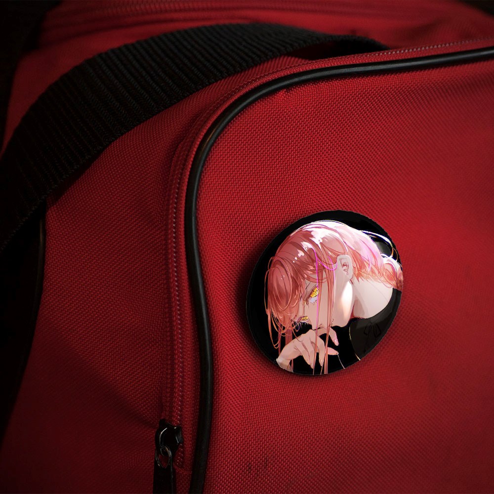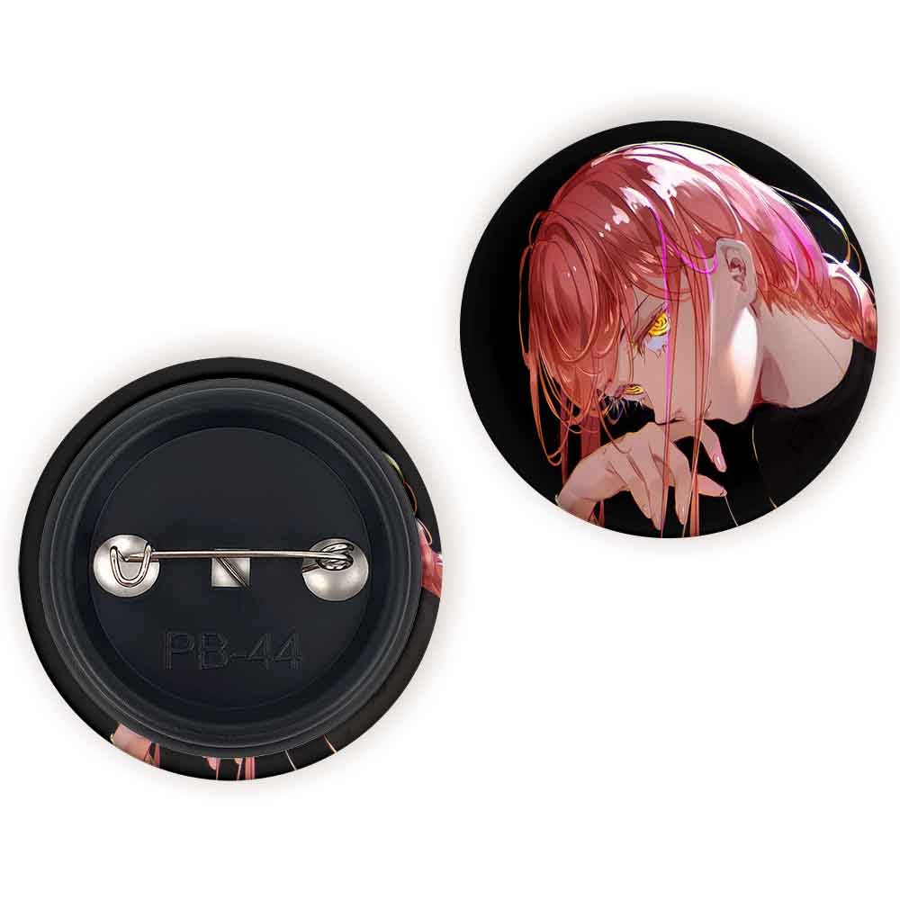 پیکسل 44 میلی متری ماکیما انیمه مرد اره ای Chainsaw Man خندالو با روکش سلفون حرارتی مات مخملی ضدخش و قطعه پشتی رنگی تولید شده است.پلاستیکی پشت پیکسل با سوزن یک تکه ثابت و بدون لغزش و جا به جایی، ایستایی بسیار بهتری نسبت به پشتی فلزی پیکسل دارند که این مهم در تولید این محصول نیز رعایت شده است.