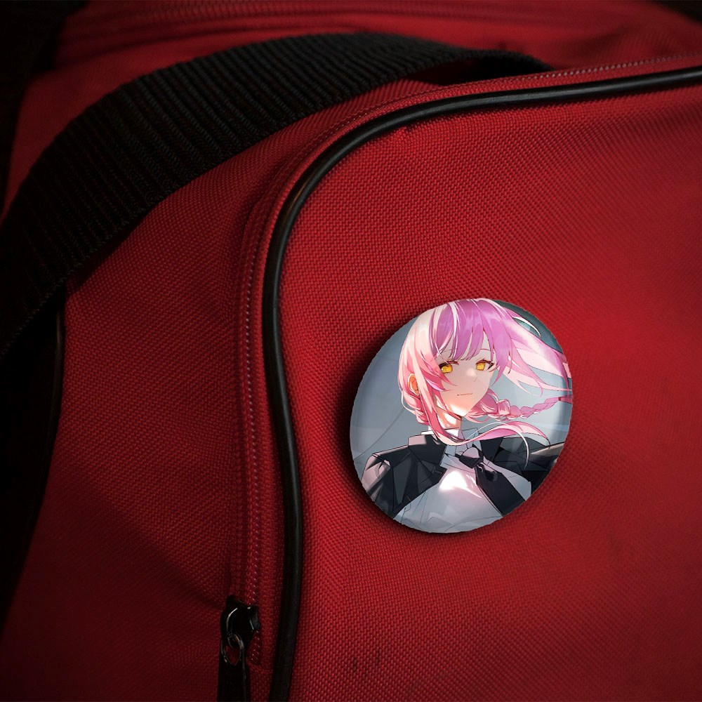 پیکسل 44 میلی متری ماکیما انیمه مرد اره ای Chainsaw Man خندالو با روکش سلفون حرارتی مات مخملی ضدخش و قطعه پشتی رنگی تولید شده است.پلاستیکی پشت پیکسل با سوزن یک تکه ثابت و بدون لغزش و جا به جایی، ایستایی بسیار بهتری نسبت به پشتی فلزی پیکسل دارند که این مهم در تولید این محصول نیز رعایت شده است.