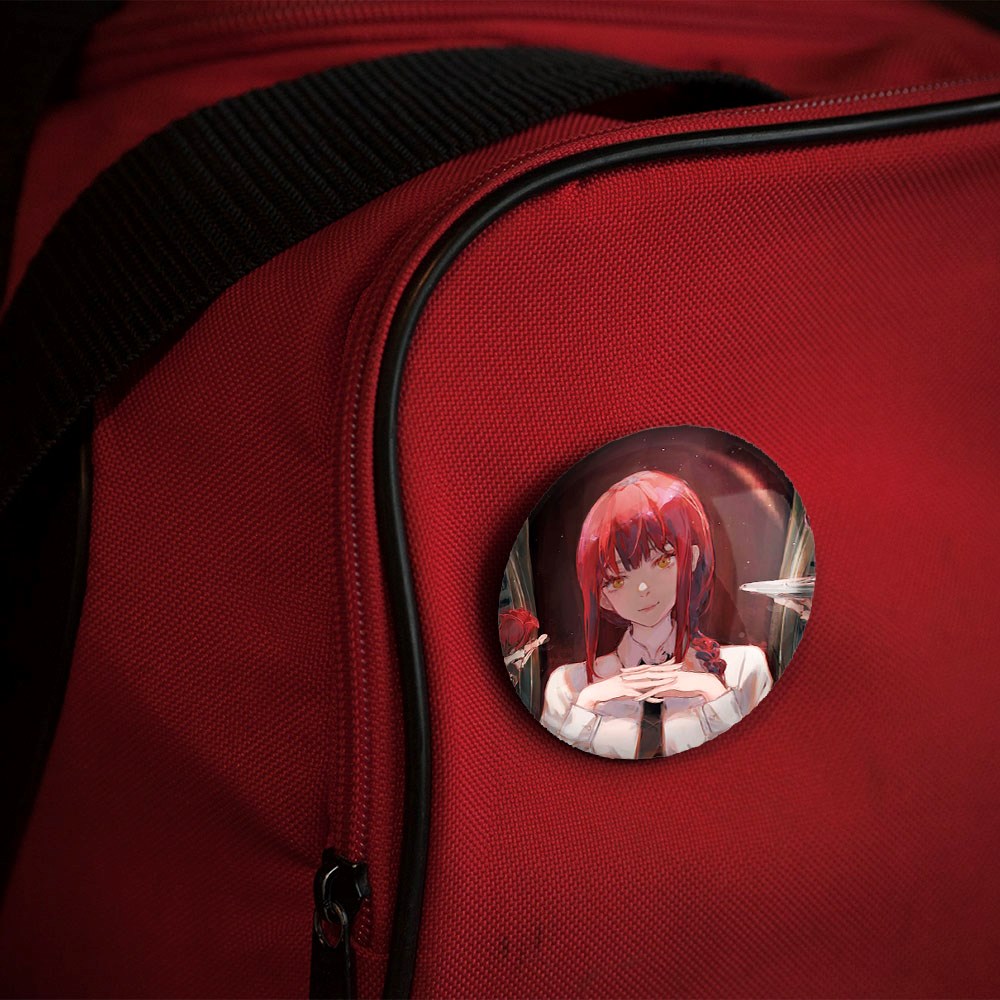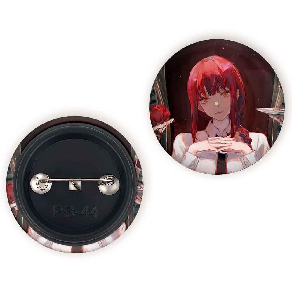 پیکسل 44 میلی متری ماکیما انیمه مرد اره ای Chainsaw Man خندالو با روکش سلفون حرارتی مات مخملی ضدخش و قطعه پشتی رنگی تولید شده است.پلاستیکی پشت پیکسل با سوزن یک تکه ثابت و بدون لغزش و جا به جایی، ایستایی بسیار بهتری نسبت به پشتی فلزی پیکسل دارند که این مهم در تولید این محصول نیز رعایت شده است.