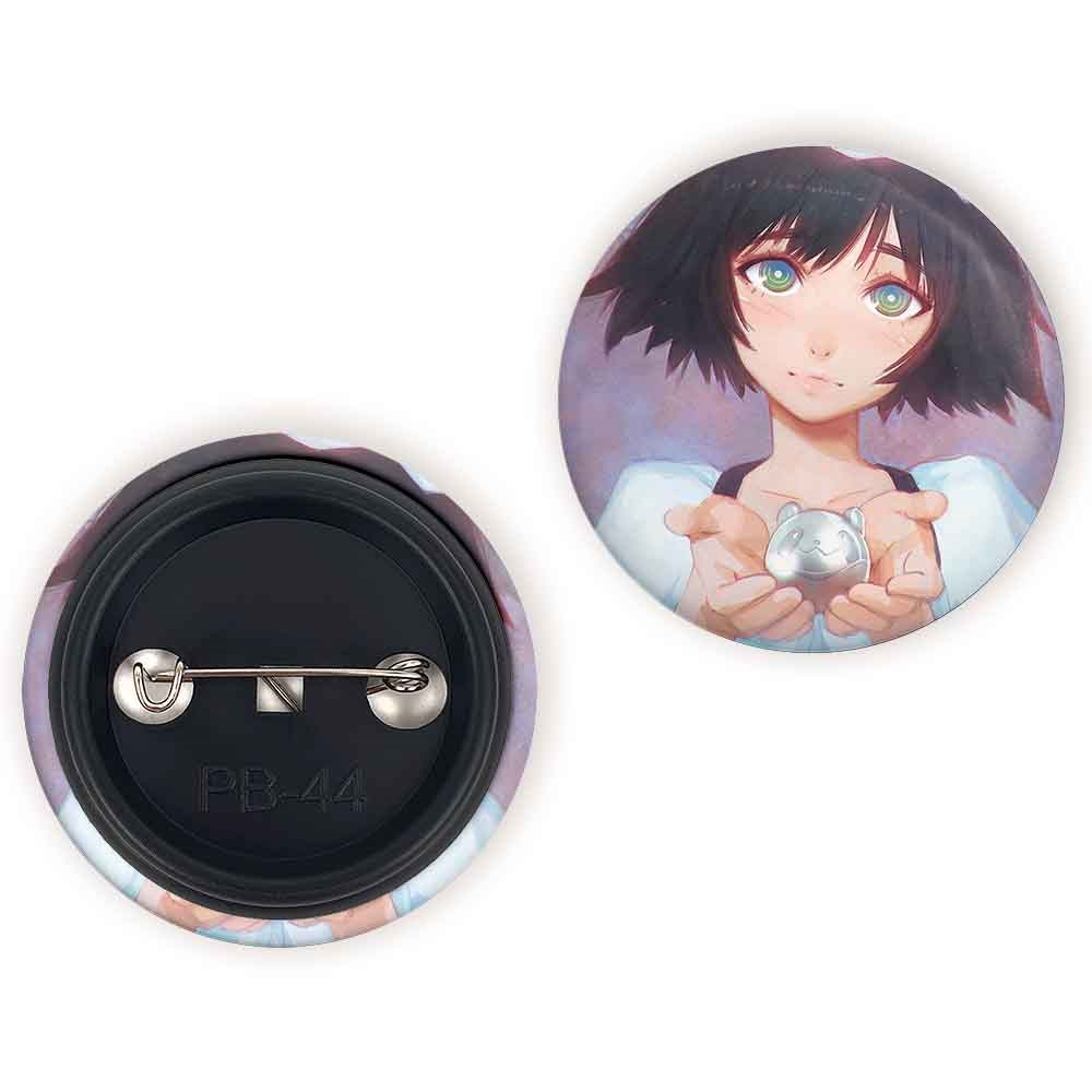 پیکسل 44 میلی متری مایوری شینا انیمه اشتاینز گیت خندالو با روکش سلفون حرارتی مات مخملی ضدخش و قطعه پشتی رنگی تولید شده است.پلاستیکی پشت پیکسل با سوزن یک تکه ثابت و بدون لغزش و جا به جایی، ایستایی بسیار بهتری نسبت به پشتی فلزی پیکسل دارند که این مهم در تولید این محصول نیز رعایت شده است.
