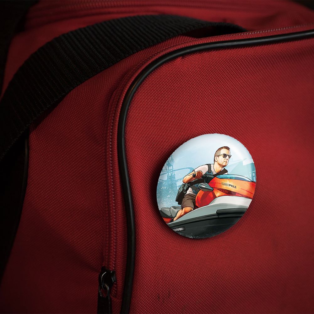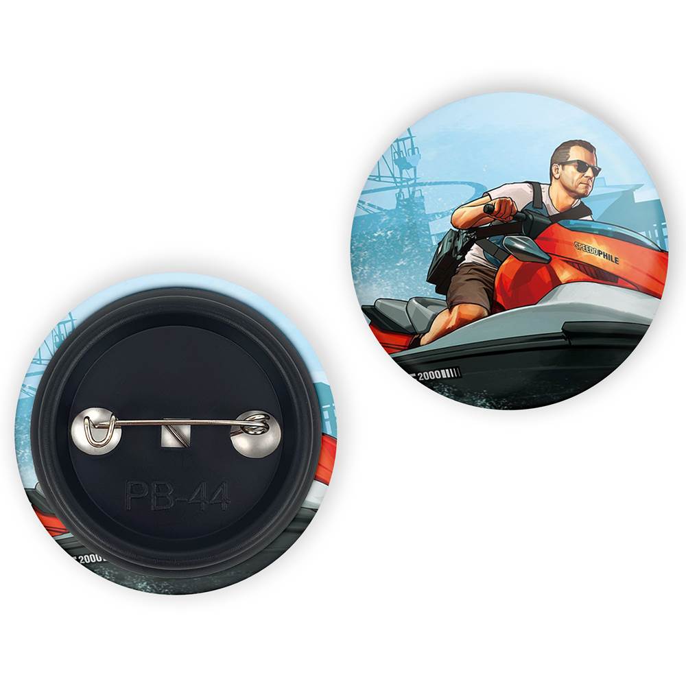 پیکسل 44 میلی متری مایکل جی تی ای GTAخندالو با روکش سلفون حرارتی مات مخملی ضدخش و قطعه پشتی رنگی تولید شده است. قطعات پلاستیکی پشت پیکسل با سوزن یک تکه ثابت و بدون لغزش و جا به جایی، ایستایی بسیار بهتری نسبت به پشتی فلزی پیکسل دارند که این مهم در تولید این محصول نیز رعایت شده است.