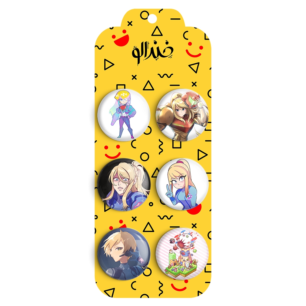 مجموعه 6 عددی پیکسل خندالو طرح متروید (Metroid) با روکش سلفون حرارتی براق ضدخش و قطعه پشتی رنگی تولید شده است. قطعات پشتی از میان 6 رنگ سفید، مشکی، صورتی، زرد، آبی و قرمز که با توجه به نوع و رنگبندی طرح روی پیکسل انتخاب شده اند تولید می شود و در هر بسته بندی مطابق عکس محصول می باشد.
