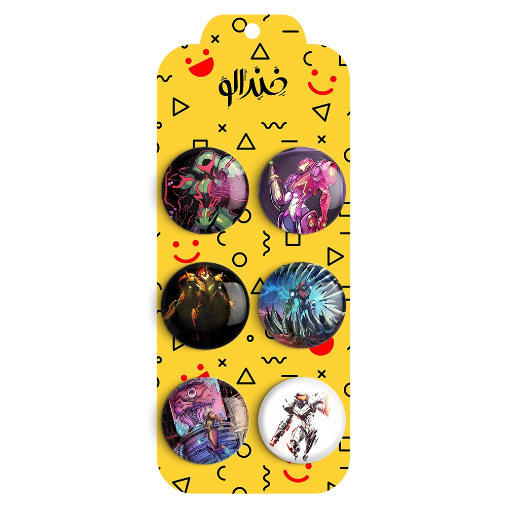 مجموعه 6 عددی پیکسل خندالو طرح متروید (Metroid) با روکش سلفون حرارتی براق ضدخش و قطعه پشتی رنگی تولید شده است. قطعات پشتی از میان 6 رنگ سفید، مشکی، صورتی، زرد، آبی و قرمز که با توجه به نوع و رنگبندی طرح روی پیکسل انتخاب شده اند تولید می شود و در هر بسته بندی مطابق عکس محصول می باشد. قطعات پلاستیکی پشت پیکسل با سوزن یک تکه ثابت و بدون لغزش و جا به جایی، ایستایی بسیار بهتری نسبت به پشتی فلزی پیکسل دارند که این مهم در تولید این محصول نیز رعایت شده است. چاپ پیکسل نیز با دستگاه های استاندارد و با بهترین سطح کیفی صورت گرفته و طرح با شفافیتی مثال زدنی و با سلفونی بدون شکست نور بر روی پیکسل نقش بسته است. همچنین بسته بندی جذاب و مینیمال پیکسل ها، آنها را مناسب هدیه کرده است..