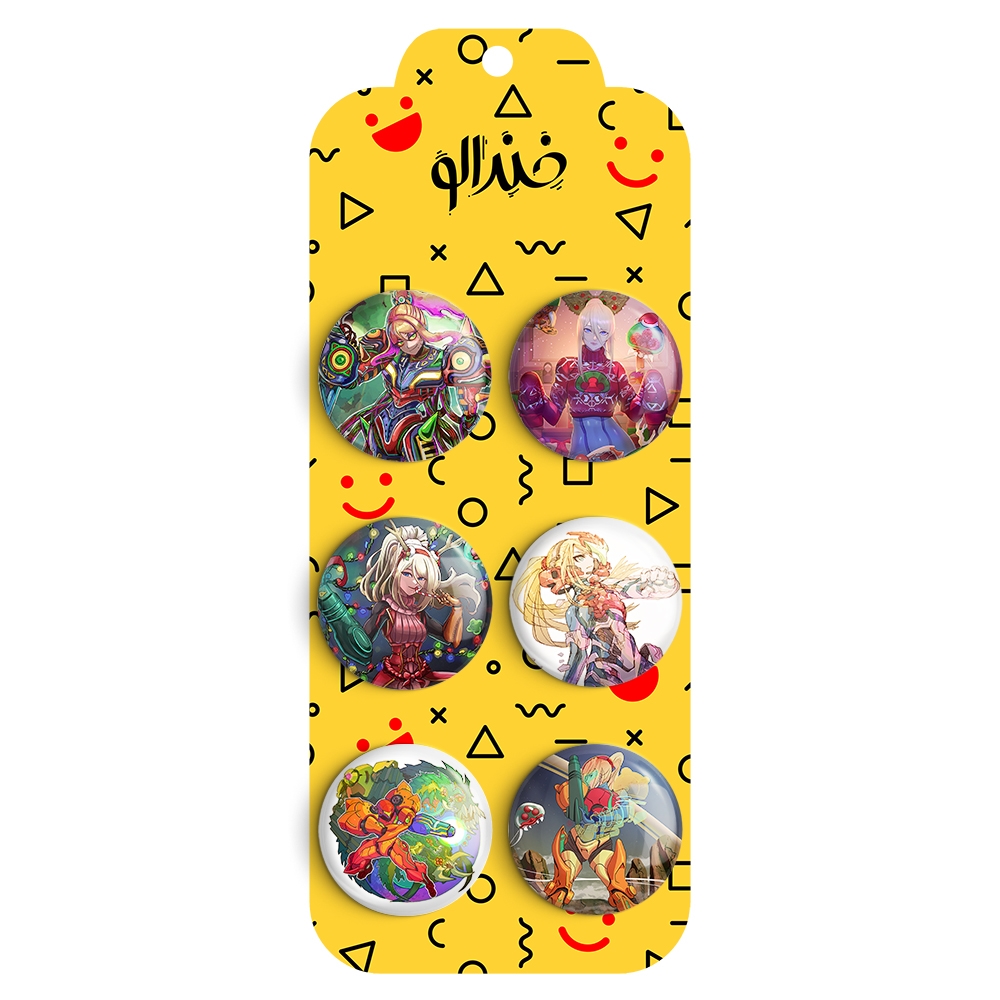 مجموعه 6 عددی پیکسل خندالو طرح متروید (Metroid) با روکش سلفون حرارتی براق ضدخش و قطعه پشتی رنگی تولید شده است. قطعات پشتی از میان 6 رنگ سفید، مشکی، صورتی، زرد، آبی و قرمز که با توجه به نوع و رنگبندی طرح روی پیکسل انتخاب شده اند تولید می شود و در هر بسته بندی مطابق عکس محصول می باشد. قطعات پلاستیکی پشت پیکسل با سوزن یک تکه ثابت و بدون لغزش و جا به جایی، ایستایی بسیار بهتری نسبت به پشتی فلزی پیکسل دارند که این مهم در تولید این محصول نیز رعایت شده است. چاپ پیکسل نیز با دستگاه های استاندارد و با بهترین سطح کیفی صورت گرفته و طرح با شفافیتی مثال زدنی و با سلفونی بدون شکست نور بر روی پیکسل نقش بسته است. همچنین بسته بندی جذاب و مینیمال پیکسل ها، آنها را مناسب هدیه کرده است..