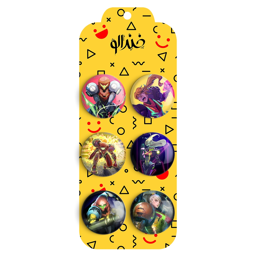 مجموعه 6 عددی پیکسل خندالو طرح متروید (Metroid) با روکش سلفون حرارتی براق ضدخش و قطعه پشتی رنگی تولید شده است. قطعات پشتی از میان 6 رنگ سفید، مشکی، صورتی، زرد، آبی و قرمز که با توجه به نوع و رنگبندی طرح روی پیکسل انتخاب شده اند تولید می شود و در هر بسته بندی مطابق عکس محصول می باشد.