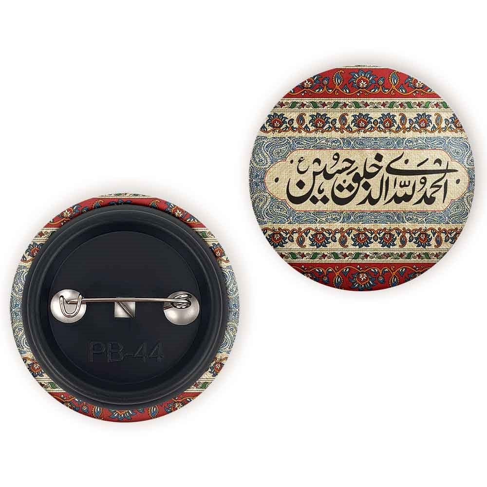 پیکسل 44 میلی متری محرم الحمد الله الذی خلق حسین خندالو با روکش سلفون حرارتی مات مخملی ضدخش و قطعه پشتی رنگی تولید شده است.پلاستیکی پشت پیکسل با سوزن یک تکه ثابت و بدون لغزش و جا به جایی، ایستایی بسیار بهتری نسبت به پشتی فلزی پیکسل دارند که این مهم در تولید این محصول نیز رعایت شده است.