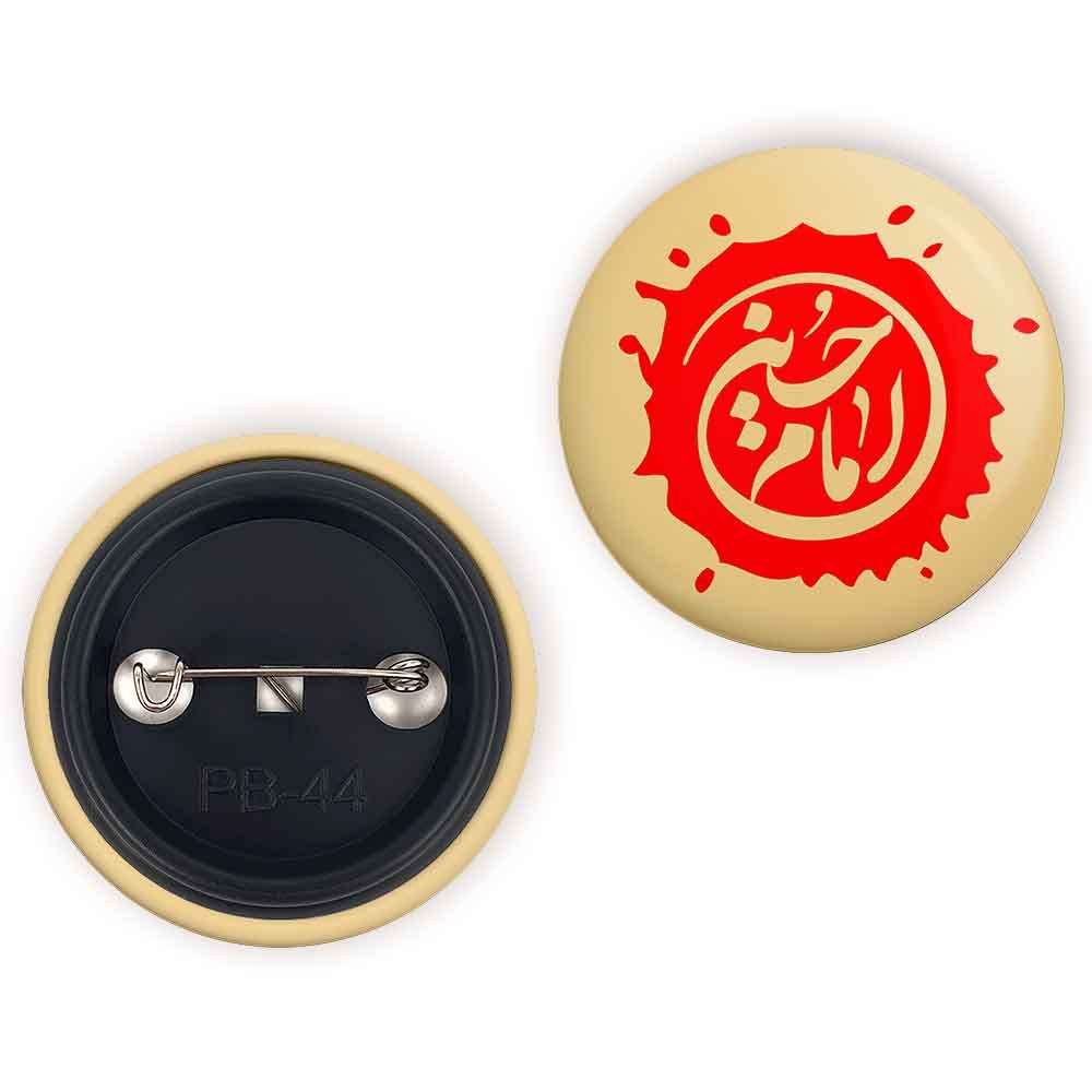 پیکسل 44 میلی متری محرم امام حسین خندالو با روکش سلفون حرارتی مات مخملی ضدخش و قطعه پشتی رنگی تولید شده است.پلاستیکی پشت پیکسل با سوزن یک تکه ثابت و بدون لغزش و جا به جایی، ایستایی بسیار بهتری نسبت به پشتی فلزی پیکسل دارند که این مهم در تولید این محصول نیز رعایت شده است.