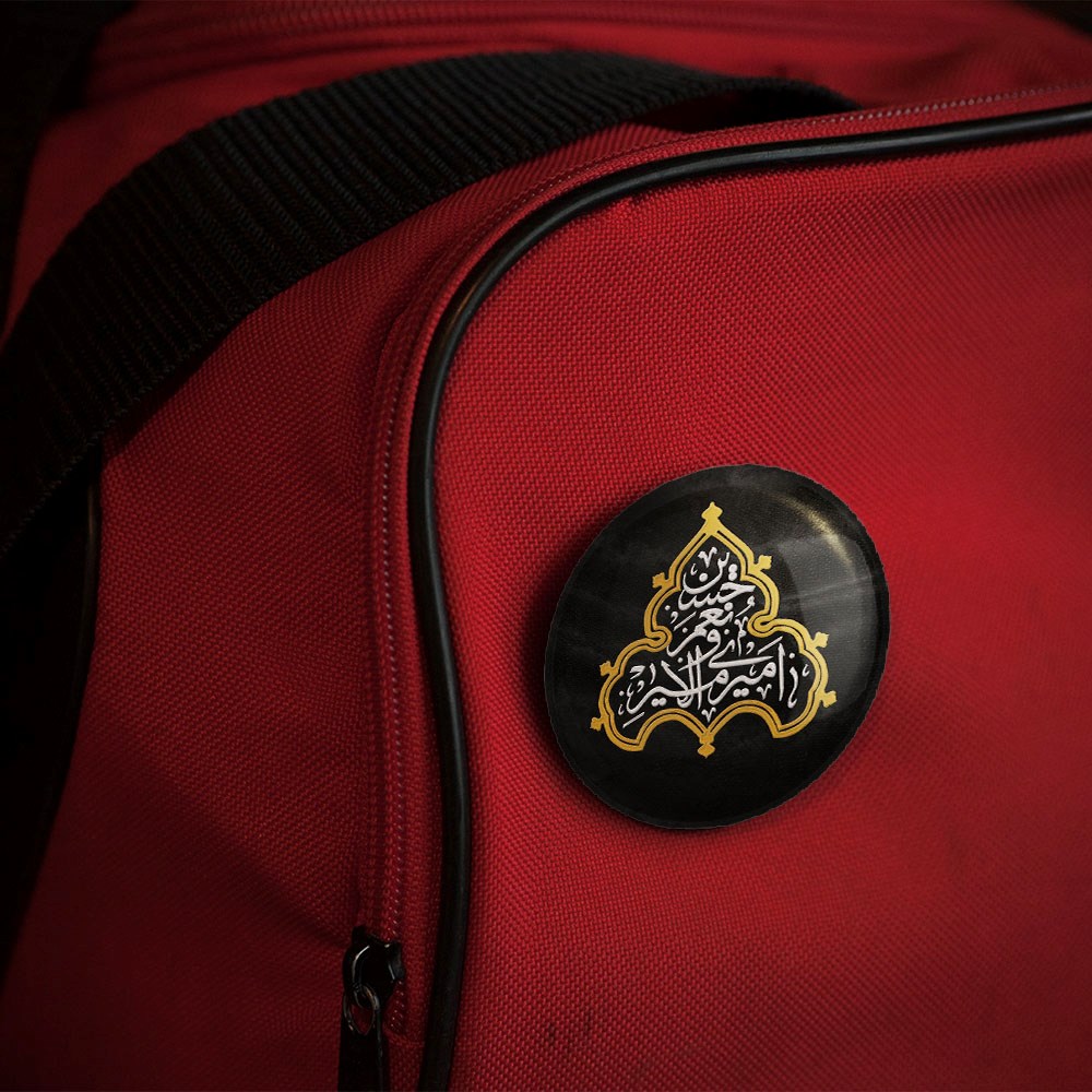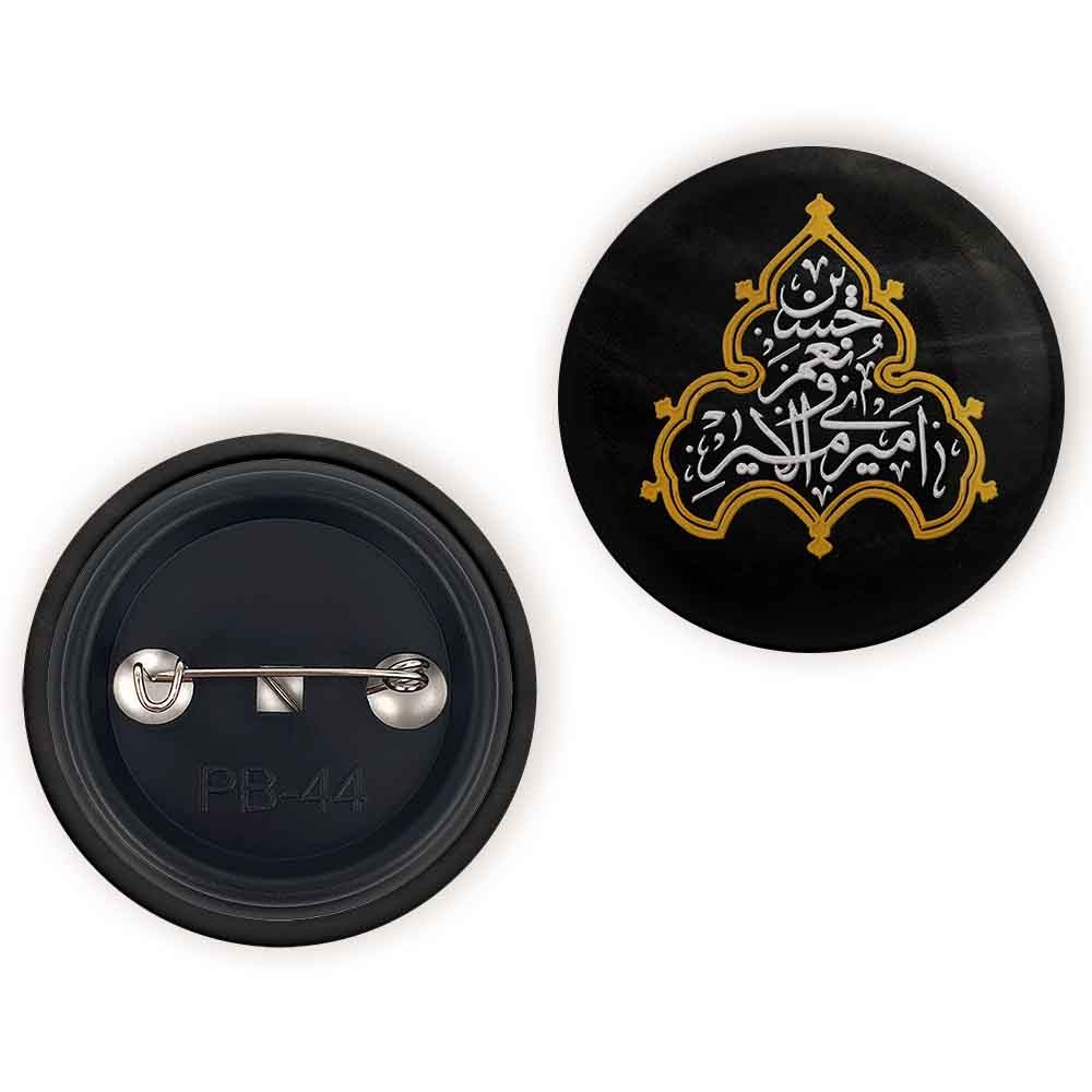 پیکسل 44 میلی متری محرم امیری حسین و نعم الامیر خندالو با روکش سلفون حرارتی مات مخملی ضدخش و قطعه پشتی رنگی تولید شده است.پلاستیکی پشت پیکسل با سوزن یک تکه ثابت و بدون لغزش و جا به جایی، ایستایی بسیار بهتری نسبت به پشتی فلزی پیکسل دارند که این مهم در تولید این محصول نیز رعایت شده است.