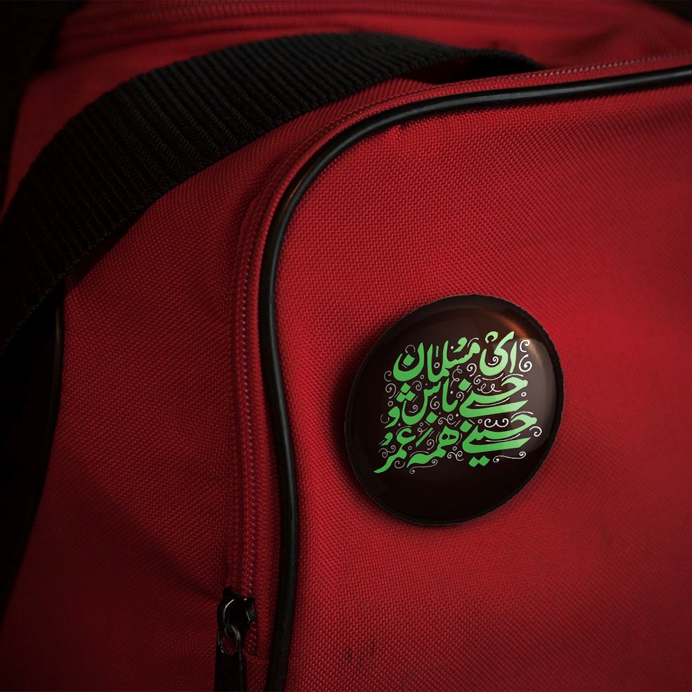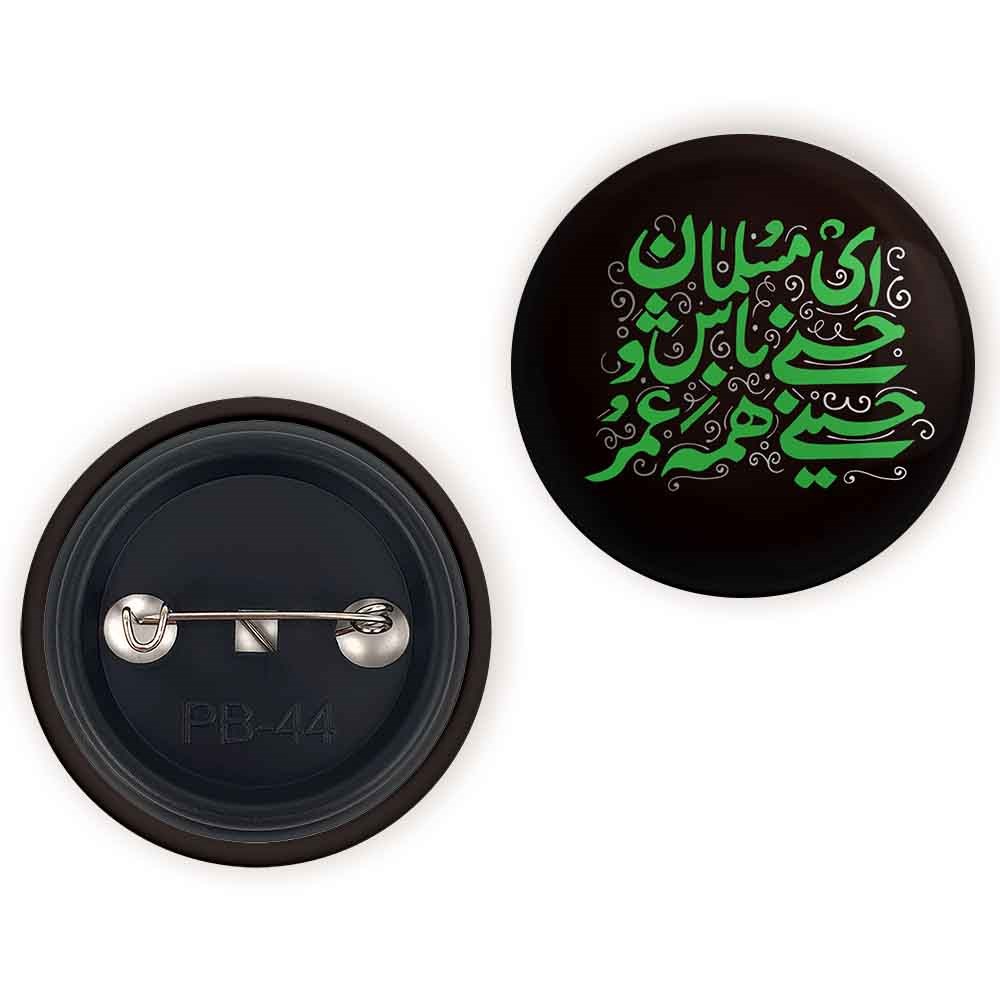 پیکسل 44 میلی متری محرم ای مسلمان حسنی باش و حسینی همه عمر خندالو با روکش سلفون حرارتی مات مخملی ضدخش و قطعه پشتی رنگی تولید شده است.پلاستیکی پشت پیکسل با سوزن یک تکه ثابت و بدون لغزش و جا به جایی، ایستایی بسیار بهتری نسبت به پشتی فلزی پیکسل دارند که این مهم در تولید این محصول نیز رعایت شده است.