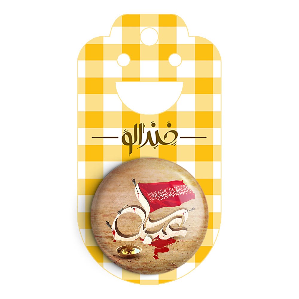 پیکسل 44 میلی متری محرم حضرت عباس خندالو با روکش سلفون حرارتی مات مخملی ضدخش و قطعه پشتی رنگی تولید شده است.پلاستیکی پشت پیکسل با سوزن یک تکه ثابت و بدون لغزش و جا به جایی، ایستایی بسیار بهتری نسبت به پشتی فلزی پیکسل دارند که این مهم در تولید این محصول نیز رعایت شده است.