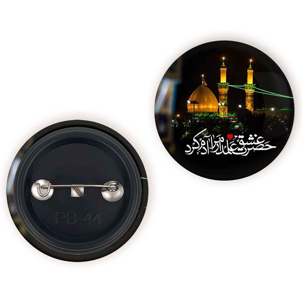 پیکسل 44 میلی متری محرم حضرت عشق علمدار مرا آدم کرد خندالو با روکش سلفون حرارتی مات مخملی ضدخش و قطعه پشتی رنگی تولید شده است.پلاستیکی پشت پیکسل با سوزن یک تکه ثابت و بدون لغزش و جا به جایی، ایستایی بسیار بهتری نسبت به پشتی فلزی پیکسل دارند که این مهم در تولید این محصول نیز رعایت شده است.