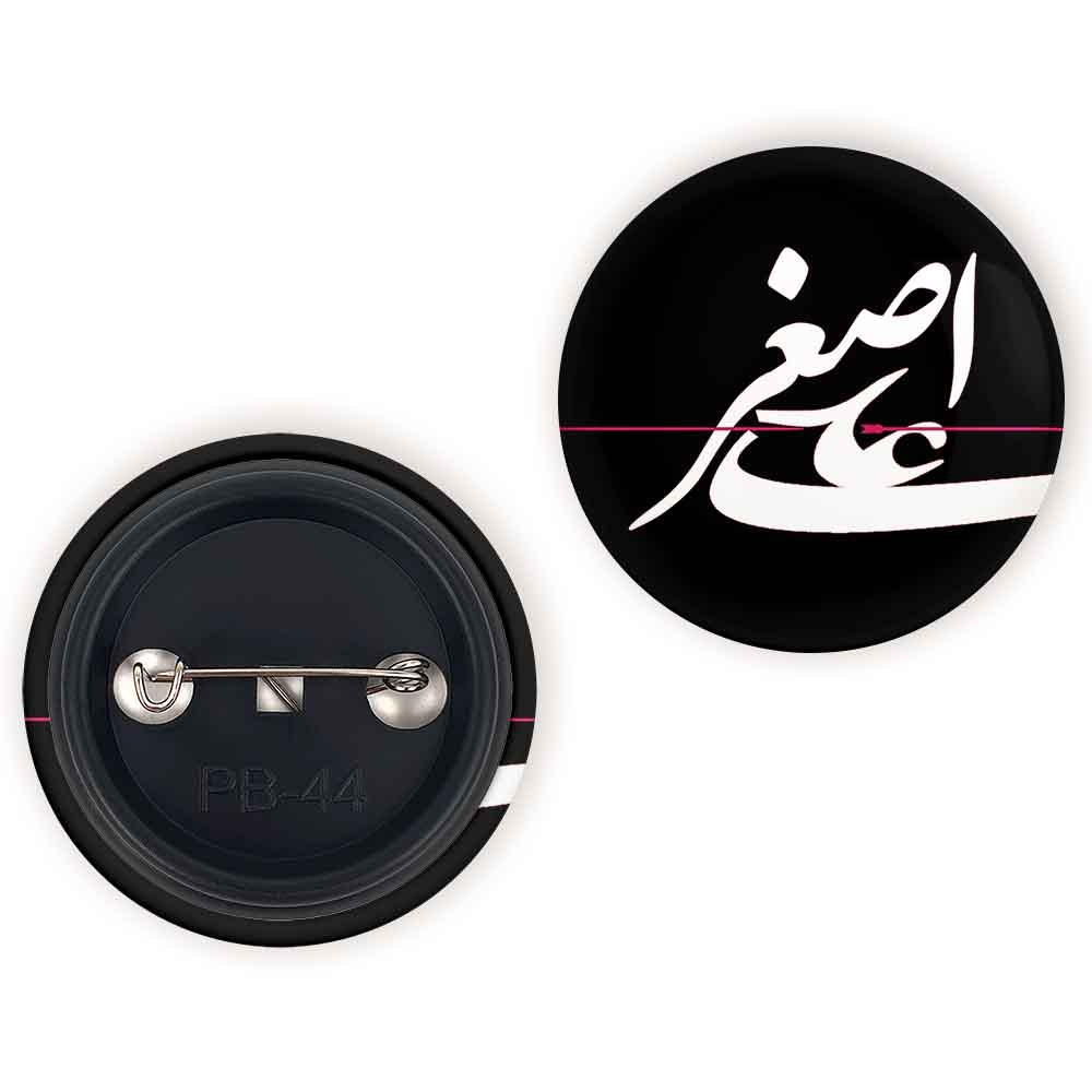 پیکسل 44 میلی متری محرم حضرت علی اصغر خندالو با روکش سلفون حرارتی مات مخملی ضدخش و قطعه پشتی رنگی تولید شده است.پلاستیکی پشت پیکسل با سوزن یک تکه ثابت و بدون لغزش و جا به جایی، ایستایی بسیار بهتری نسبت به پشتی فلزی پیکسل دارند که این مهم در تولید این محصول نیز رعایت شده است.