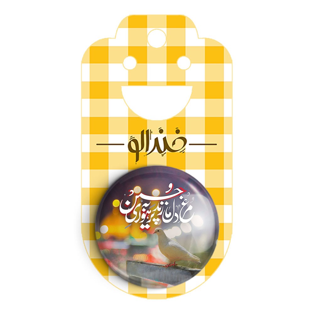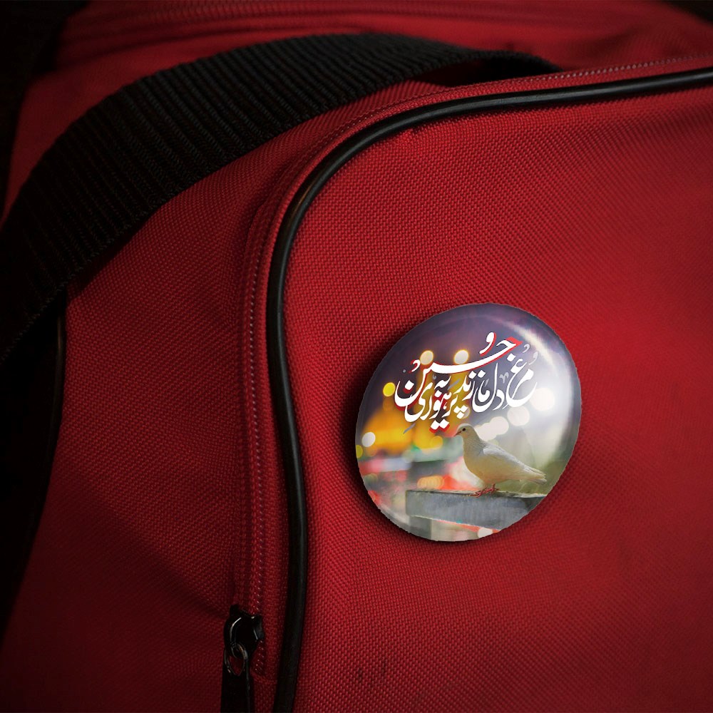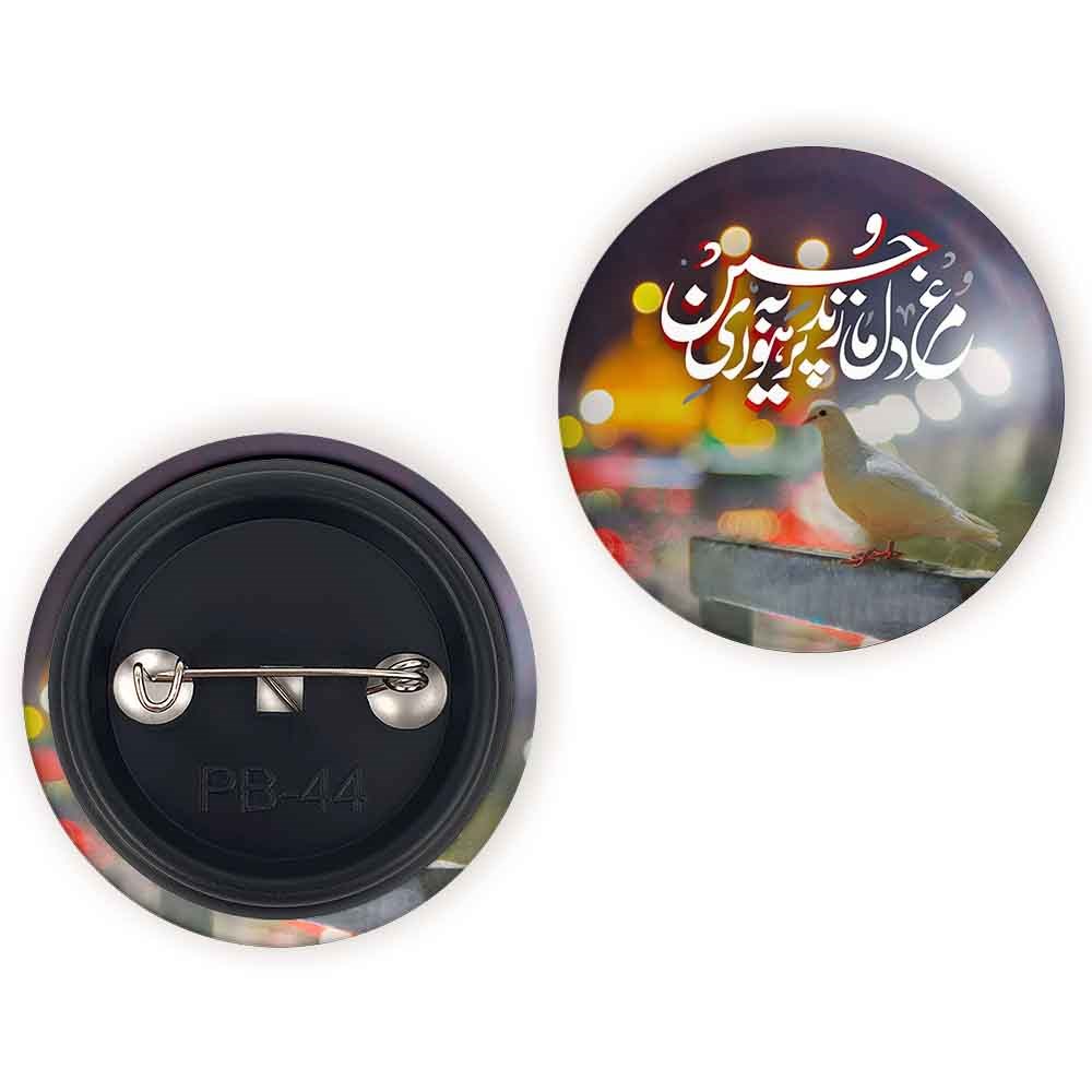 پیکسل 44 میلی متری محرم مرغ دل ما زند پر به هوای حسین خندالو با روکش سلفون حرارتی مات مخملی ضدخش و قطعه پشتی رنگی تولید شده است.پلاستیکی پشت پیکسل با سوزن یک تکه ثابت و بدون لغزش و جا به جایی، ایستایی بسیار بهتری نسبت به پشتی فلزی پیکسل دارند که این مهم در تولید این محصول نیز رعایت شده است.