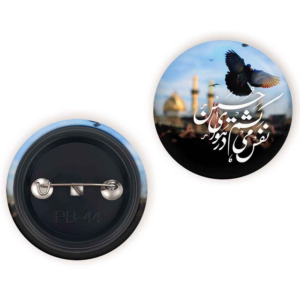 پیکسل 44 میلی متری محرم نفس می کشم در هوای حسین خندالو با روکش سلفون حرارتی مات مخملی ضدخش و قطعه پشتی رنگی تولید شده است.پلاستیکی پشت پیکسل با سوزن یک تکه ثابت و بدون لغزش و جا به جایی، ایستایی بسیار بهتری نسبت به پشتی فلزی پیکسل دارند که این مهم در تولید این محصول نیز رعایت شده است.