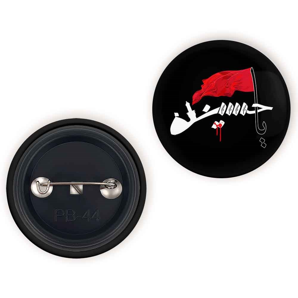 پیکسل 44 میلی متری محرم یاحسین خندالو با روکش سلفون حرارتی مات مخملی ضدخش و قطعه پشتی رنگی تولید شده است.پلاستیکی پشت پیکسل با سوزن یک تکه ثابت و بدون لغزش و جا به جایی، ایستایی بسیار بهتری نسبت به پشتی فلزی پیکسل دارند که این مهم در تولید این محصول نیز رعایت شده است.