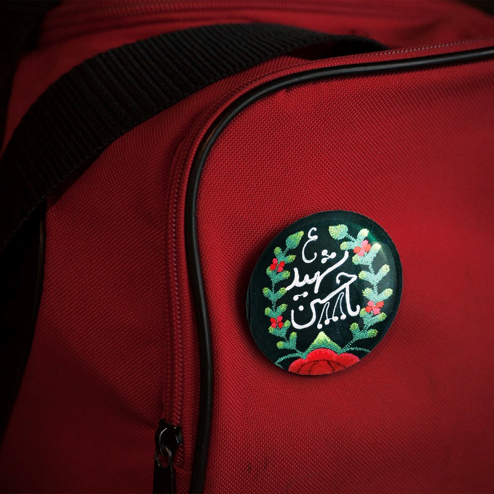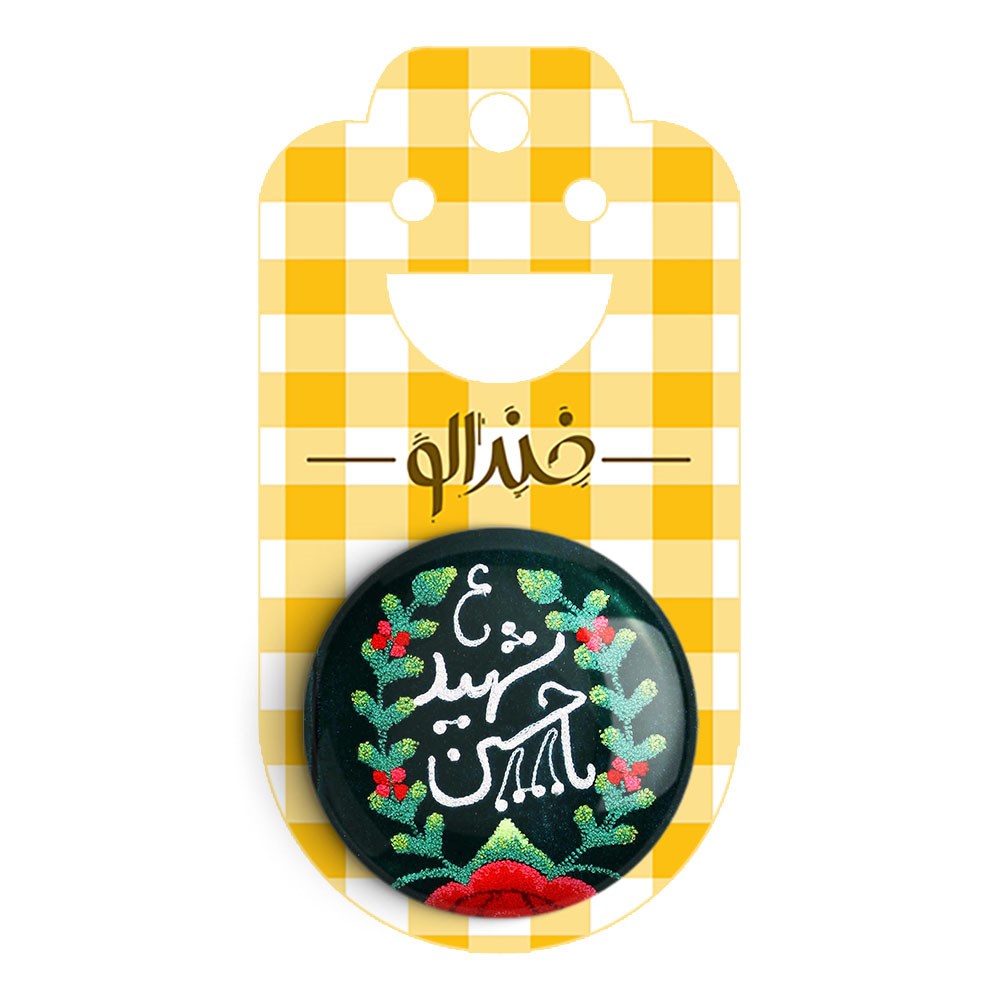 پیکسل 44 میلی متری محرم یاحسین شهید خندالو با روکش سلفون حرارتی مات مخملی ضدخش و قطعه پشتی رنگی تولید شده است.پلاستیکی پشت پیکسل با سوزن یک تکه ثابت و بدون لغزش و جا به جایی، ایستایی بسیار بهتری نسبت به پشتی فلزی پیکسل دارند که این مهم در تولید این محصول نیز رعایت شده است.
