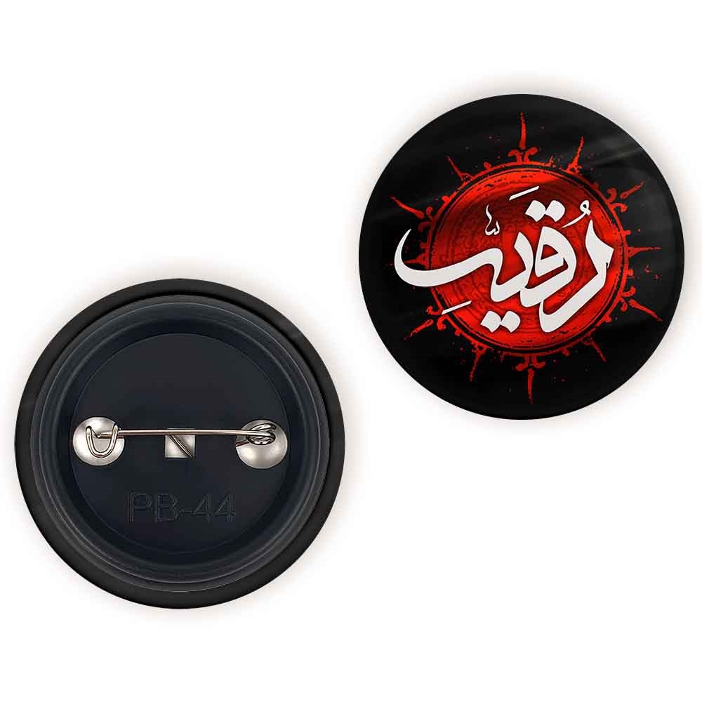 پیکسل 44 میلی متری محرم یا رقیه خندالو با روکش سلفون حرارتی مات مخملی ضدخش و قطعه پشتی رنگی تولید شده است.پلاستیکی پشت پیکسل با سوزن یک تکه ثابت و بدون لغزش و جا به جایی، ایستایی بسیار بهتری نسبت به پشتی فلزی پیکسل دارند که این مهم در تولید این محصول نیز رعایت شده است.