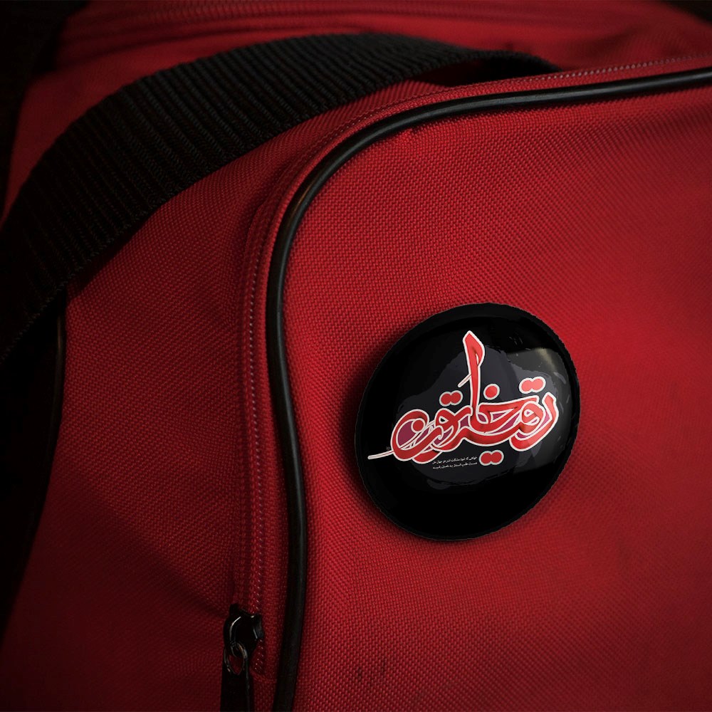 پیکسل 44 میلی متری محرم یا رقیه خندالو با روکش سلفون حرارتی مات مخملی ضدخش و قطعه پشتی رنگی تولید شده است.پلاستیکی پشت پیکسل با سوزن یک تکه ثابت و بدون لغزش و جا به جایی، ایستایی بسیار بهتری نسبت به پشتی فلزی پیکسل دارند که این مهم در تولید این محصول نیز رعایت شده است.