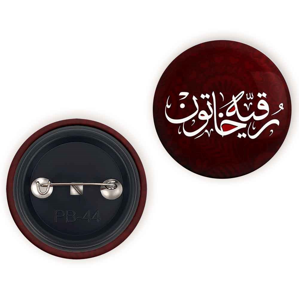 پیکسل 44 میلی متری محرم یا رقیه خندالو با روکش سلفون حرارتی مات مخملی ضدخش و قطعه پشتی رنگی تولید شده است.پلاستیکی پشت پیکسل با سوزن یک تکه ثابت و بدون لغزش و جا به جایی، ایستایی بسیار بهتری نسبت به پشتی فلزی پیکسل دارند که این مهم در تولید این محصول نیز رعایت شده است.