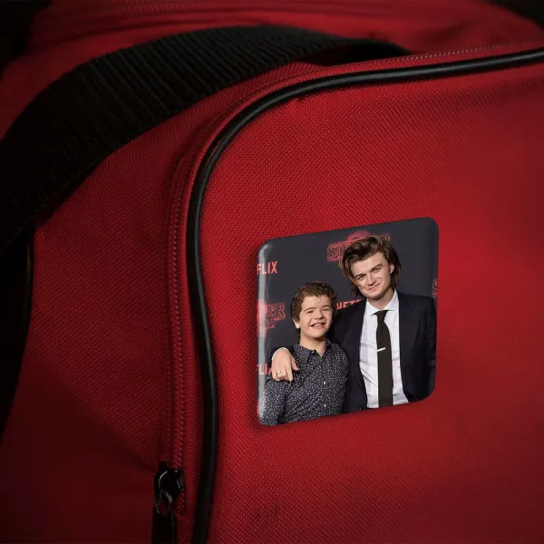 پیکسل 37 میلی متری استیو و داستین سریال استرنجر تینگز Stranger Things خندالو با روکش براق با وضوح بالا و قطعه پشتی فلزی تولید شده است. قطعه پشت پیکسل مربعی با سوزن یک تکه ثابت و بدون لغزش و جا به جایی، ایستایی بسیار خوبی برای روی لباس یا کیف و یا هر محصول پارچه ای دارد که این مهم در تولید این محصول نیز رعایت شده است. چاپ پیکسل مربعی استیو و داستین سریال استرنجر تینگز Stranger Things نیز با دستگاه های استاندارد و با بهترین سطح کیفی صورت گرفته و طرح با شفافیتی مثال زدنی و با سلفونی بدون لک و خط و خش بر روی پیکسل نقش بسته است. همچنین بسته بندی جذاب و مینیمال پیکسل استیو و داستین سریال استرنجر تینگز Stranger Things ، آنها را مناسب هدیه کرده است.