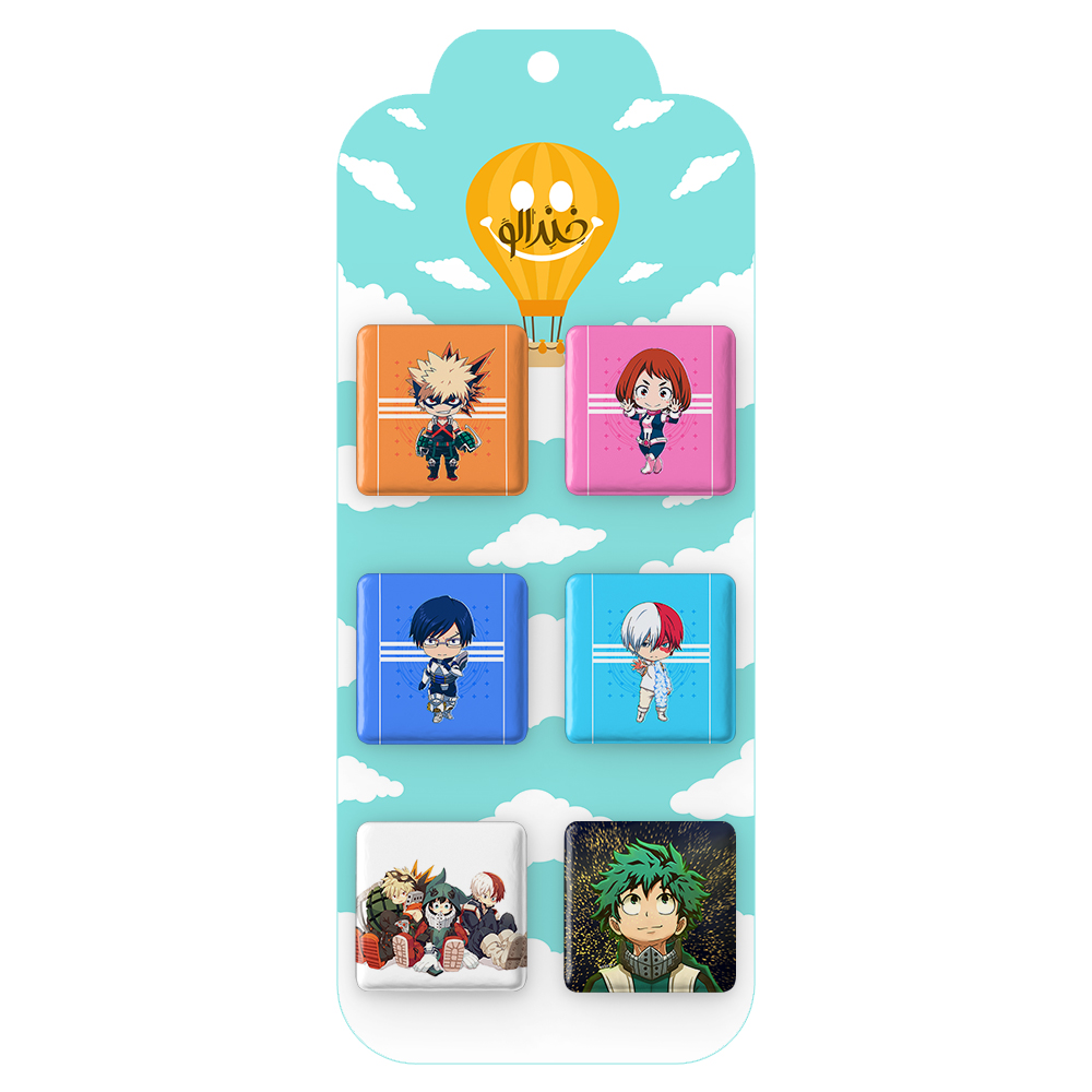 پیکسل های مربعی خندالو طرح انیمه آکادمی قهرمانان من محصولی جدید، جذاب و منحصر به فرد هستند که با بالاترین سطح کیفی تولید می شوند.فرم مربعی پیکسل های خندالو طرح انیمه آکادمی قهرمانان من، آنها را بدل به محصولی خاص و کمتر دیده شده کرده است. قطعات پشت پیکسل خندالو با سوزن یک تکه تیز، به نحوی تولید شده اند که هنگام نصب بر روی کیف و لباس ایستایی بسیار خوبی دارند.