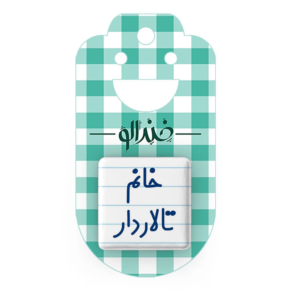 پیکسل 37 میلی متری خانم تالاردار خندالو با روکش براق با وضوح بالا و قطعه پشتی فلزی تولید شده است. قطعه پشت پیکسل مربعی با سوزن یک تکه ثابت و بدون لغزش و جا به جایی، ایستایی بسیار خوبی برای روی لباس یا کیف و یا هر محصول پارچه ای دارد که این مهم در تولید این محصول نیز رعایت شده است. چاپ پیکسل مربعی خانم تالاردار نیز با دستگاه های استاندارد و با بهترین سطح کیفی صورت گرفته و طرح با شفافیتی مثال زدنی و با سلفونی بدون لک و خط و خش بر روی پیکسل نقش بسته است. همچنین بسته بندی جذاب و مینیمال پیکسل خانم تالاردار ، آنها را مناسب هدیه کرده است.