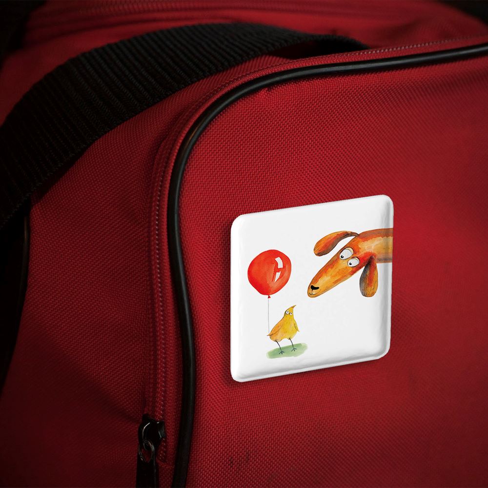 پیکسل 37 میلی متری سگ و جوجه خندالو با روکش براق با وضوح بالا و قطعه پشتی فلزی تولید شده است. قطعه پشت پیکسل مربعی با سوزن یک تکه ثابت و بدون لغزش و جا به جایی، ایستایی بسیار خوبی برای روی لباس یا کیف و یا هر محصول پارچه ای دارد که این مهم در تولید این محصول نیز رعایت شده است. چاپ پیکسل مربعی سگ و جوجه نیز با دستگاه های استاندارد و با بهترین سطح کیفی صورت گرفته و طرح با شفافیتی مثال زدنی و با سلفونی بدون لک و خط و خش بر روی پیکسل نقش بسته است. همچنین بسته بندی جذاب و مینیمال پیکسل سگ و جوجه ، آنها را مناسب هدیه کرده است.