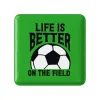 پیکسل 37 میلی متری فوتبال خندالو با روکش براق با وضوح بالا و قطعه پشتی فلزی تولید شده است. قطعه پشت پیکسل مربعی با سوزن یک تکه ثابت و بدون لغزش و جا به جایی، ایستایی بسیار خوبی برای روی لباس یا کیف و یا هر محصول پارچه ای دارد که این مهم در تولید این محصول نیز رعایت شده است. چاپ پیکسل مربعی فوتبال نیز با دستگاه های استاندارد و با بهترین سطح کیفی صورت گرفته و طرح با شفافیتی مثال زدنی و با سلفونی بدون لک و خط و خش بر روی پیکسل نقش بسته است. همچنین بسته بندی جذاب و مینیمال پیکسل فوتبال ، آنها را مناسب هدیه کرده است.