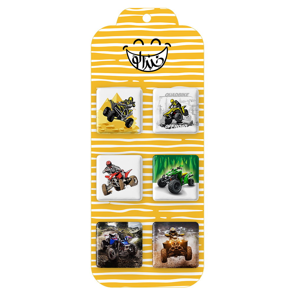 پیکسل های مربعی خندالو طرح موتور چهار چرخ محصولی جدید، جذاب و منحصر به فرد هستند که با بالاترین سطح کیفی تولید می شوند.فرم مربعی پیکسل های خندالو طرح موتور چهار چرخ، آنها را بدل به محصولی خاص و کمتر دیده شده کرده است. قطعات پشت پیکسل خندالو با سوزن یک تکه تیز، به نحوی تولید شده اند که هنگام نصب بر روی کیف و لباس ایستایی بسیار خوبی دارند.