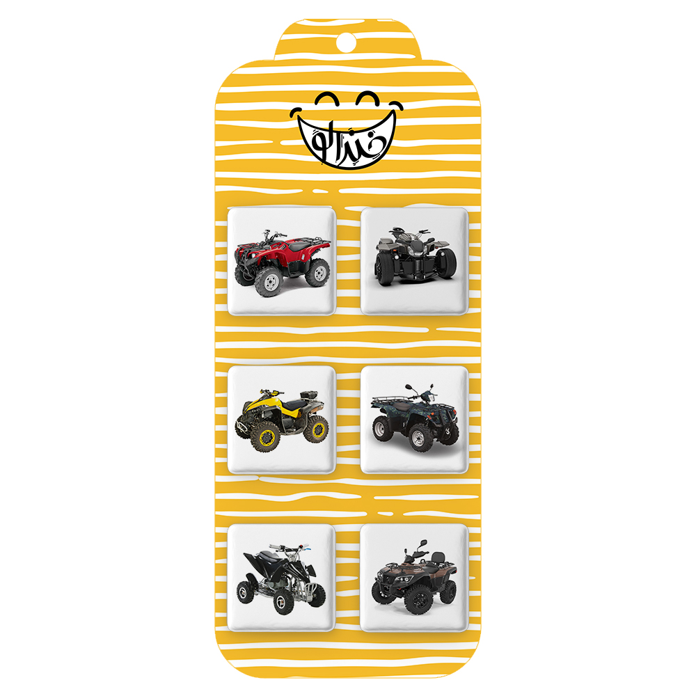 پیکسل های مربعی خندالو طرح موتور چهار چرخ محصولی جدید، جذاب و منحصر به فرد هستند که با بالاترین سطح کیفی تولید می شوند.فرم مربعی پیکسل های خندالو طرح موتور چهار چرخ، آنها را بدل به محصولی خاص و کمتر دیده شده کرده است. قطعات پشت پیکسل خندالو با سوزن یک تکه تیز، به نحوی تولید شده اند که هنگام نصب بر روی کیف و لباس ایستایی بسیار خوبی دارند.