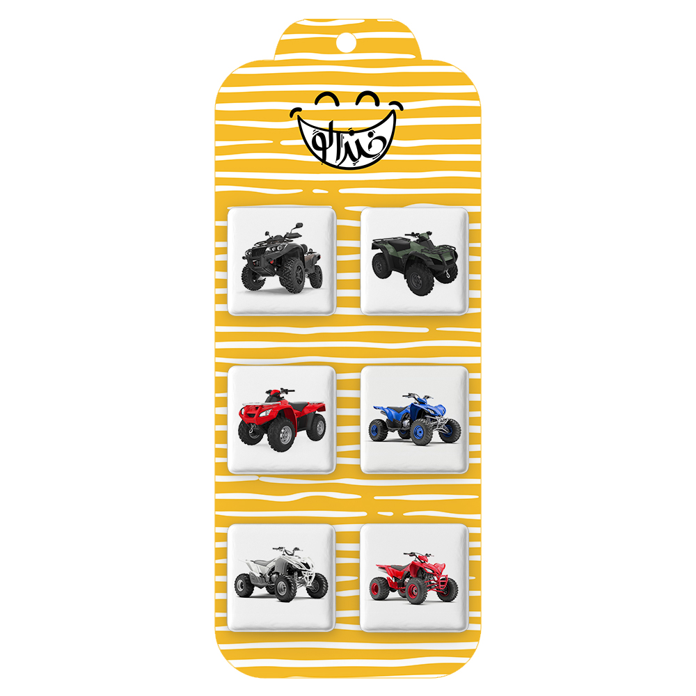 پیکسل های مربعی خندالو طرح موتور چهار چرخ محصولی جدید، جذاب و منحصر به فرد هستند که با بالاترین سطح کیفی تولید می شوند.فرم مربعی پیکسل های خندالو طرح موتور چهار چرخ، آنها را بدل به محصولی خاص و کمتر دیده شده کرده است. قطعات پشت پیکسل خندالو با سوزن یک تکه تیز، به نحوی تولید شده اند که هنگام نصب بر روی کیف و لباس ایستایی بسیار خوبی دارند.