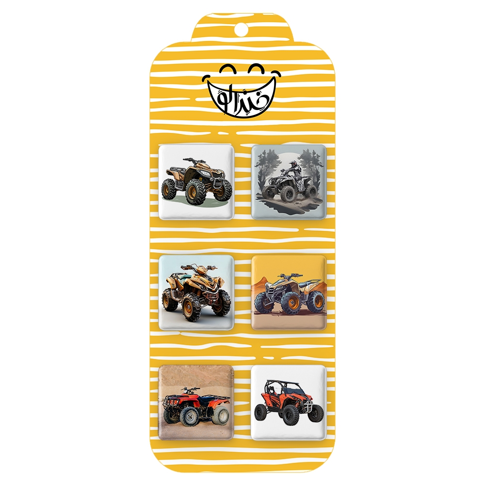 پیکسل های مربعی خندالو طرح موتور چهار چرخ محصولی جدید، جذاب و منحصر به فرد هستند که با بالاترین سطح کیفی تولید می شوند.فرم مربعی پیکسل های خندالو طرح موتور چهار چرخ، آنها را بدل به محصولی خاص و کمتر دیده شده کرده است. قطعات پشت پیکسل خندالو با سوزن یک تکه تیز، به نحوی تولید شده اند که هنگام نصب بر روی کیف و لباس ایستایی بسیار خوبی دارند.