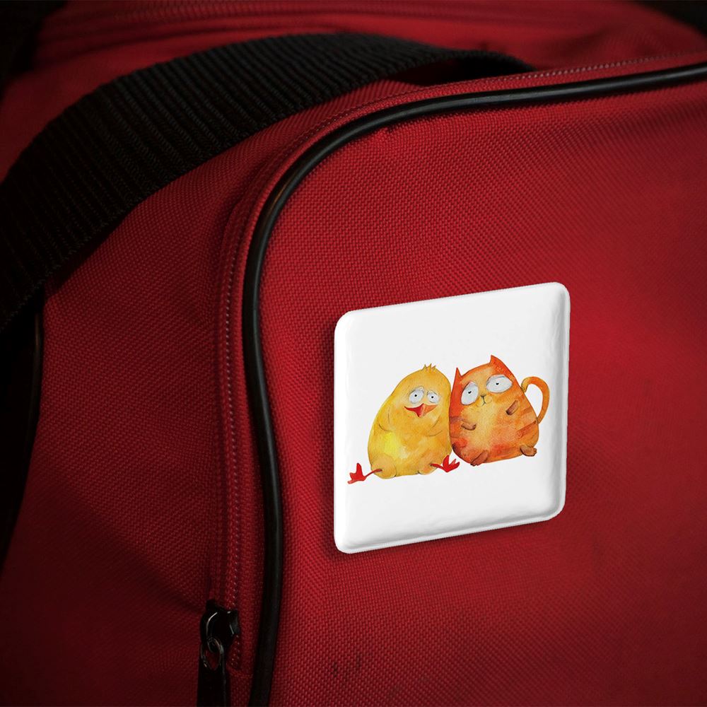 پیکسل 37 میلی متری گربه و جوجه خندالو با روکش براق با وضوح بالا و قطعه پشتی فلزی تولید شده است. قطعه پشت پیکسل مربعی با سوزن یک تکه ثابت و بدون لغزش و جا به جایی، ایستایی بسیار خوبی برای روی لباس یا کیف و یا هر محصول پارچه ای دارد که این مهم در تولید این محصول نیز رعایت شده است. چاپ پیکسل مربعی گربه و جوجه نیز با دستگاه های استاندارد و با بهترین سطح کیفی صورت گرفته و طرح با شفافیتی مثال زدنی و با سلفونی بدون لک و خط و خش بر روی پیکسل نقش بسته است. همچنین بسته بندی جذاب و مینیمال پیکسل گربه و جوجه ، آنها را مناسب هدیه کرده است.