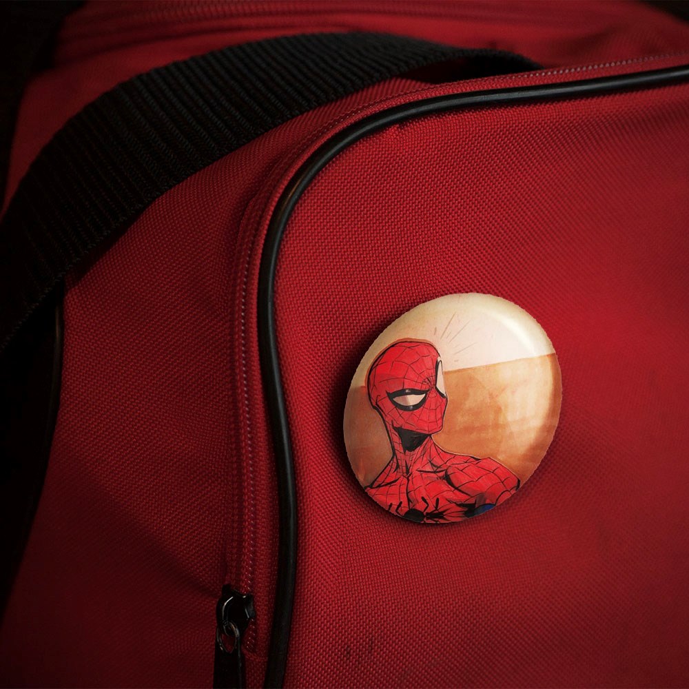 پیکسل 44 میلی متری مرد عنکبوتی Spider Man خندالو با روکش سلفون حرارتی مات مخملی ضدخش و قطعه پشتی رنگی تولید شده است.پلاستیکی پشت پیکسل با سوزن یک تکه ثابت و بدون لغزش و جا به جایی، ایستایی بسیار بهتری نسبت به پشتی فلزی پیکسل دارند که این مهم در تولید این محصول نیز رعایت شده است.