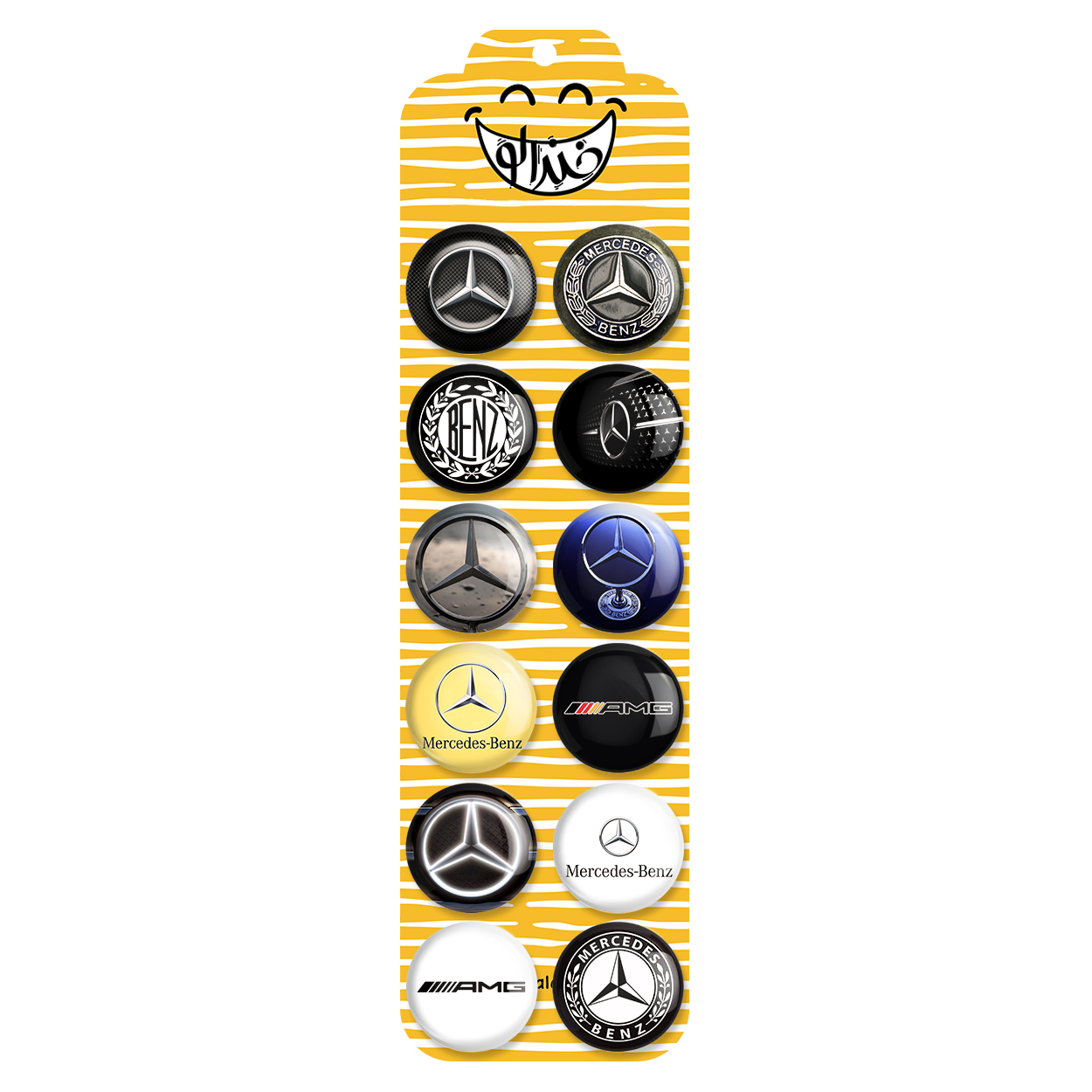 پک 12 عددی پیکسل خندالو طرح مرسدس بنز (Mercedes Benz) با روکش سلفون حرارتی براق ضدخش و قطعه پشتی رنگی تولید شده است. قطعات پشتی از میان 6 رنگ سفید، مشکی، صورتی، زرد، آبی و قرمز که با توجه به نوع و رنگبندی طرح روی پیکسل انتخاب شده اند تولید می شود و در هر بسته بندی مطابق عکس محصول می باشد. قطعات پلاستیکی پشت پیکسل با سوزن یک تکه ثابت و بدون لغزش و جا به جایی، ایستایی بسیار بهتری نسبت به پشتی فلزی پیکسل دارند که این مهم در تولید این محصول نیز رعایت شده است.
