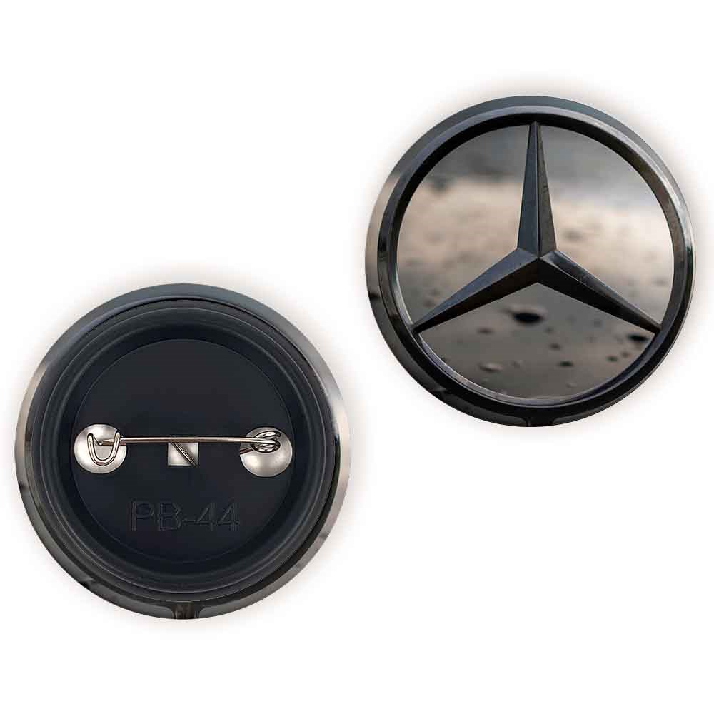 پیکسل 44 میلی متری مرسدس بنز Mercedes Benz خندالو با روکش سلفون حرارتی مات مخملی ضدخش و قطعه پشتی رنگی تولید شده است.پلاستیکی پشت پیکسل با سوزن یک تکه ثابت و بدون لغزش و جا به جایی، ایستایی بسیار بهتری نسبت به پشتی فلزی پیکسل دارند که این مهم در تولید این محصول نیز رعایت شده است.