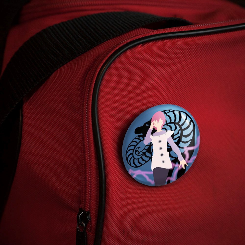 پیکسل 44 میلی متری مرلین انیمه هفت گناه کبیره خندالو با روکش سلفون حرارتی مات مخملی ضدخش و قطعه پشتی رنگی تولید شده است.پلاستیکی پشت پیکسل با سوزن یک تکه ثابت و بدون لغزش و جا به جایی، ایستایی بسیار بهتری نسبت به پشتی فلزی پیکسل دارند که این مهم در تولید این محصول نیز رعایت شده است.