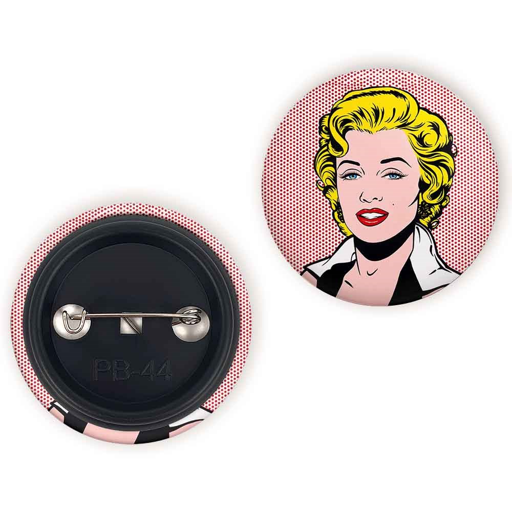 پیکسل 44 میلی متری مرلین مونرو Marilyn Monroe خندالو با روکش سلفون حرارتی مات مخملی ضدخش و قطعه پشتی رنگی تولید شده است.پلاستیکی پشت پیکسل با سوزن یک تکه ثابت و بدون لغزش و جا به جایی، ایستایی بسیار بهتری نسبت به پشتی فلزی پیکسل دارند که این مهم در تولید این محصول نیز رعایت شده است.