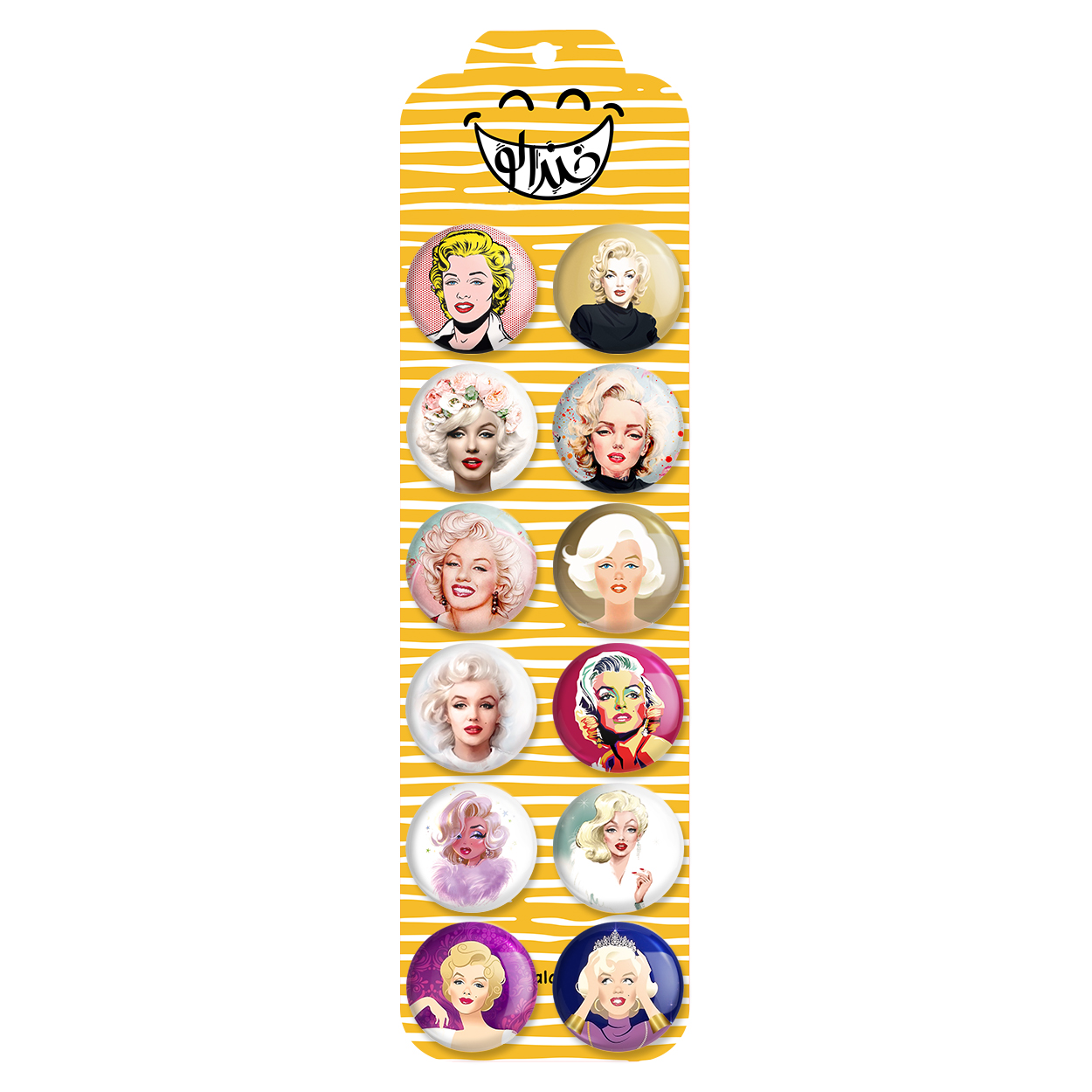 پک 12 عددی پیکسل خندالو طرح مرلین مونرو (Marilyn Monroe) با روکش سلفون حرارتی براق ضدخش و قطعه پشتی رنگی تولید شده است. قطعات پشتی از میان 6 رنگ سفید، مشکی، صورتی، زرد، آبی و قرمز که با توجه به نوع و رنگبندی طرح روی پیکسل انتخاب شده اند تولید می شود و در هر بسته بندی مطابق عکس محصول می باشد. قطعات پلاستیکی پشت پیکسل با سوزن یک تکه ثابت و بدون لغزش و جا به جایی، ایستایی بسیار بهتری نسبت به پشتی فلزی پیکسل دارند که این مهم در تولید این محصول نیز رعایت شده است. چاپ پیکسل طرح مرلین مونرو (Marilyn Monroe) بسته ۱۲ عددی نیز با دستگاه های استاندارد و با بهترین سطح کیفی صورت گرفته و طرح با شفافیتی مثال زدنی و با سلفونی بدون شکست نور بر روی پیکسل نقش بسته است.