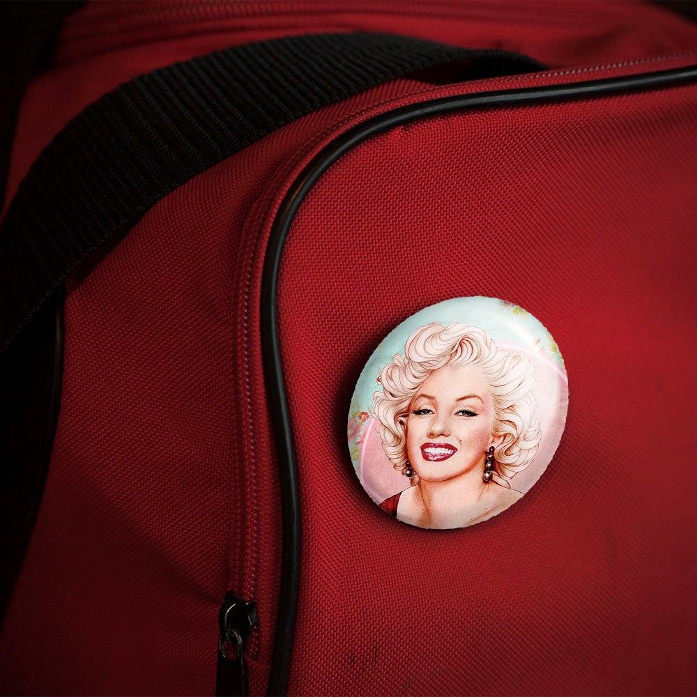 پیکسل 44 میلی متری مرلین مونرو Marilyn Monroe خندالو با روکش سلفون حرارتی مات مخملی ضدخش و قطعه پشتی رنگی تولید شده است.پلاستیکی پشت پیکسل با سوزن یک تکه ثابت و بدون لغزش و جا به جایی، ایستایی بسیار بهتری نسبت به پشتی فلزی پیکسل دارند که این مهم در تولید این محصول نیز رعایت شده است.