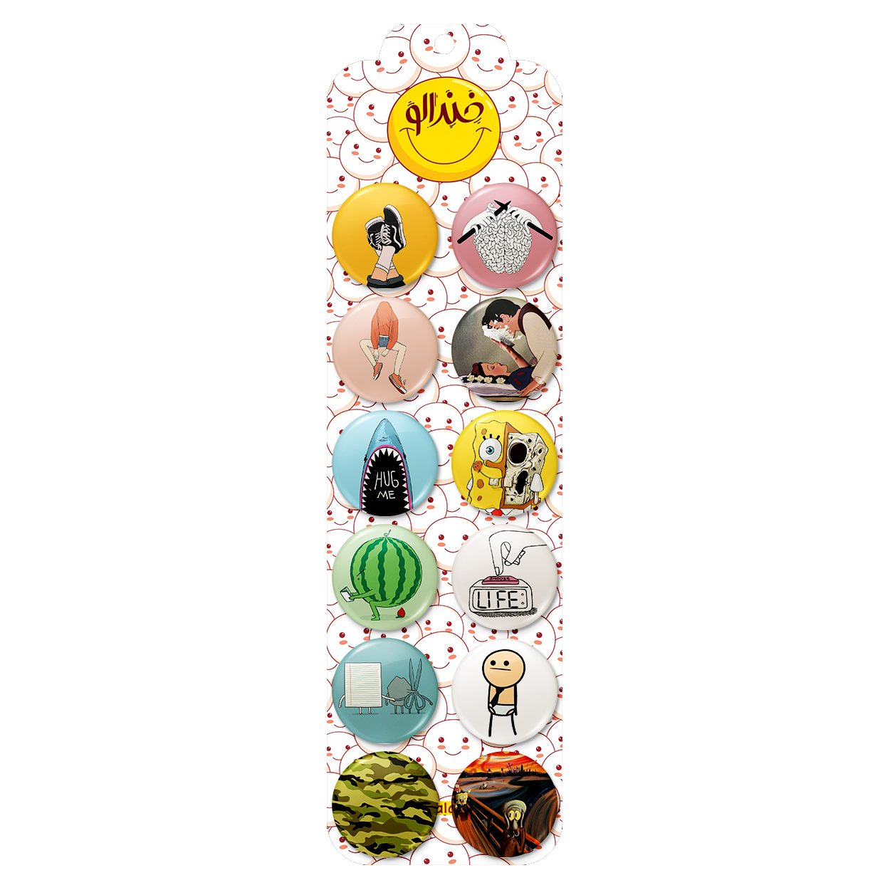 پک 12 عددی پیکسل خندالو طرح مفهومی با روکش سلفون حرارتی براق ضدخش و قطعه پشتی رنگی تولید شده است. قطعات پشتی از میان 6 رنگ سفید، مشکی، صورتی، زرد، آبی و قرمز که با توجه به نوع و رنگبندی طرح روی پیکسل انتخاب شده اند تولید می شود و در هر بسته بندی مطابق عکس محصول می باشد. قطعات پلاستیکی پشت پیکسل با سوزن یک تکه ثابت و بدون لغزش و جا به جایی، ایستایی بسیار بهتری نسبت به پشتی فلزی پیکسل دارند که این مهم در تولید این محصول نیز رعایت شده است. چاپ پیکسل طرح مفهومی بسته ۱۲ عددی نیز با دستگاه های استاندارد و با بهترین سطح کیفی صورت گرفته و طرح با شفافیتی مثال زدنی و با سلفونی بدون شکست نور بر روی پیکسل نقش بسته است.
