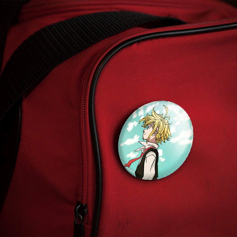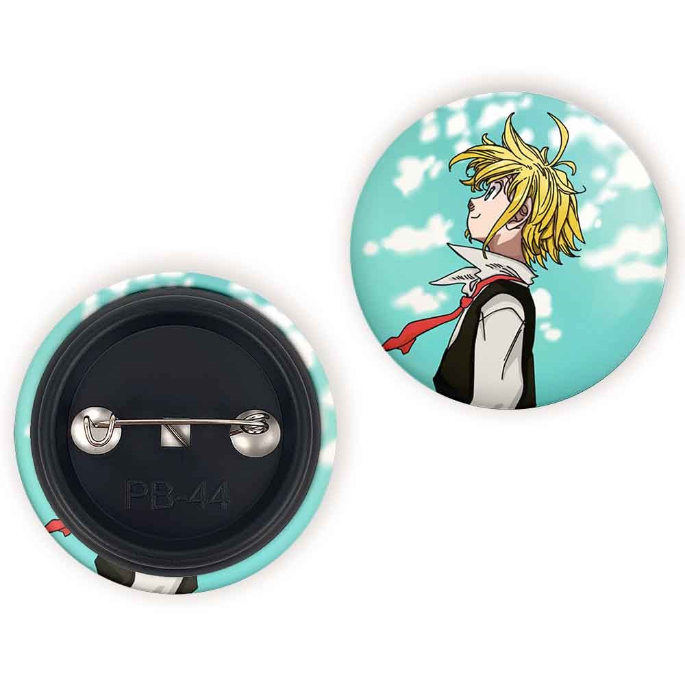 پیکسل 44 میلی متری ملیوداس انیمه هفت گناه کبیره خندالو با روکش سلفون حرارتی مات مخملی ضدخش و قطعه پشتی رنگی تولید شده است.پلاستیکی پشت پیکسل با سوزن یک تکه ثابت و بدون لغزش و جا به جایی، ایستایی بسیار بهتری نسبت به پشتی فلزی پیکسل دارند که این مهم در تولید این محصول نیز رعایت شده است.