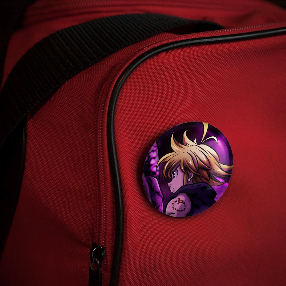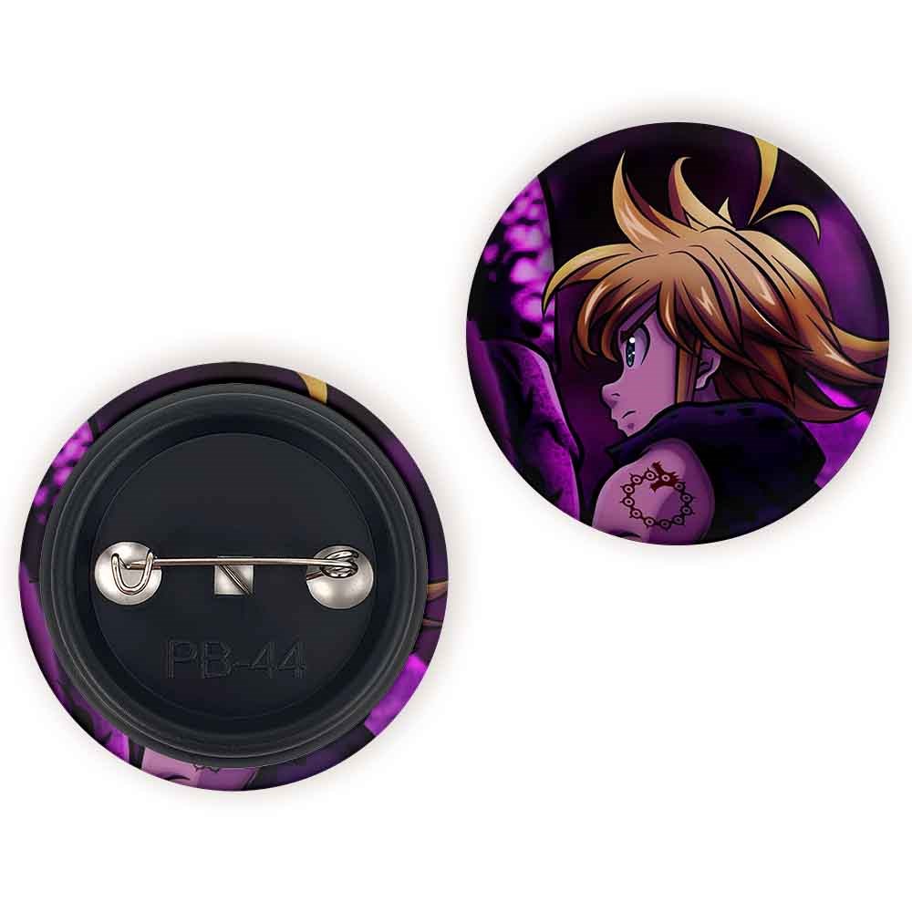 پیکسل 44 میلی متری ملیوداس انیمه هفت گناه کبیره خندالو با روکش سلفون حرارتی مات مخملی ضدخش و قطعه پشتی رنگی تولید شده است.پلاستیکی پشت پیکسل با سوزن یک تکه ثابت و بدون لغزش و جا به جایی، ایستایی بسیار بهتری نسبت به پشتی فلزی پیکسل دارند که این مهم در تولید این محصول نیز رعایت شده است.