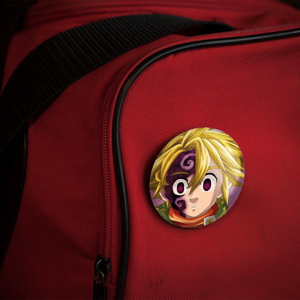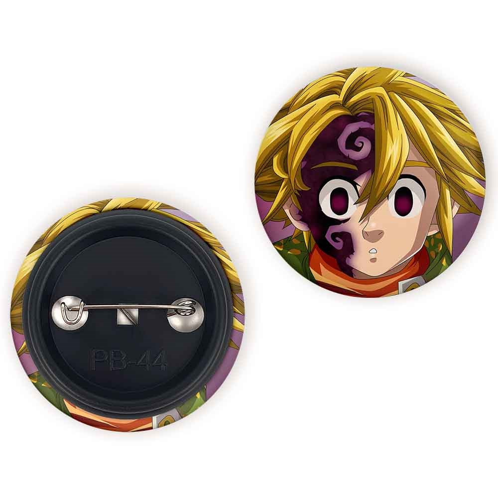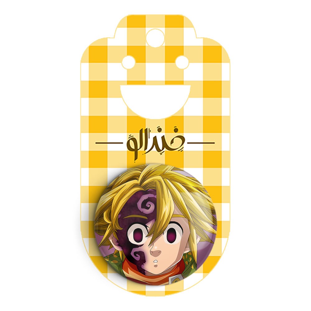 پیکسل 44 میلی متری ملیوداس انیمه هفت گناه کبیره خندالو با روکش سلفون حرارتی مات مخملی ضدخش و قطعه پشتی رنگی تولید شده است.پلاستیکی پشت پیکسل با سوزن یک تکه ثابت و بدون لغزش و جا به جایی، ایستایی بسیار بهتری نسبت به پشتی فلزی پیکسل دارند که این مهم در تولید این محصول نیز رعایت شده است.