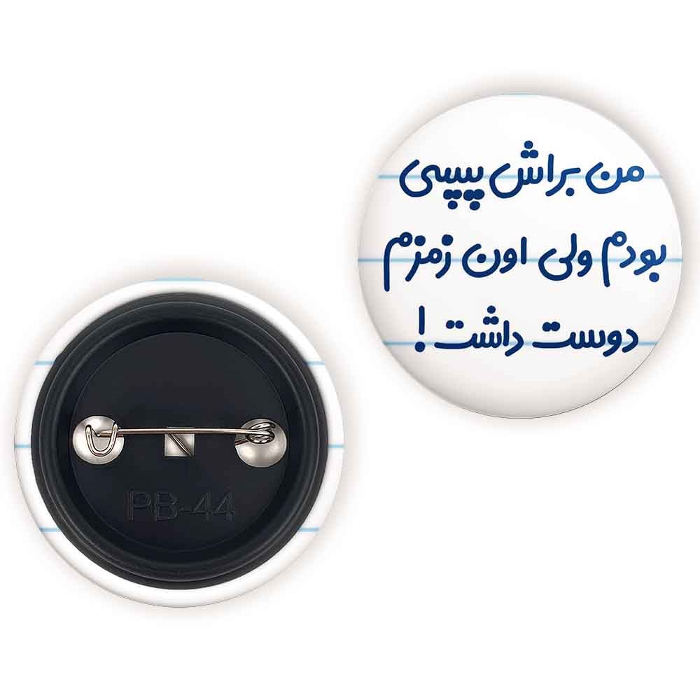 پیکسل 44 میلی متری من براش پپسی بودم ولی اون زمزم دوست داشت خندالو با روکش سلفون حرارتی مات مخملی ضدخش و قطعه پشتی رنگی تولید شده است. قطعات پلاستیکی پشت پیکسل با سوزن یک تکه ثابت و بدون لغزش و جا به جایی، ایستایی بسیار بهتری نسبت به پشتی فلزی پیکسل دارند که این مهم در تولید این محصول نیز رعایت شده است. چاپ پیکسل من براش پپسی بودم ولی اون زمزم دوست داشت نیز با دستگاه های استاندارد و با بهترین سطح کیفی صورت گرفته و طرح با شفافیتی مثال زدنی و با سلفونی بدون شکست نور بر روی پیکسل نقش بسته است. همچنین بسته بندی جذاب و مینیمال پیکسل من براش پپسی بودم ولی اون زمزم دوست داشت ، آنها را مناسب هدیه کرده است.