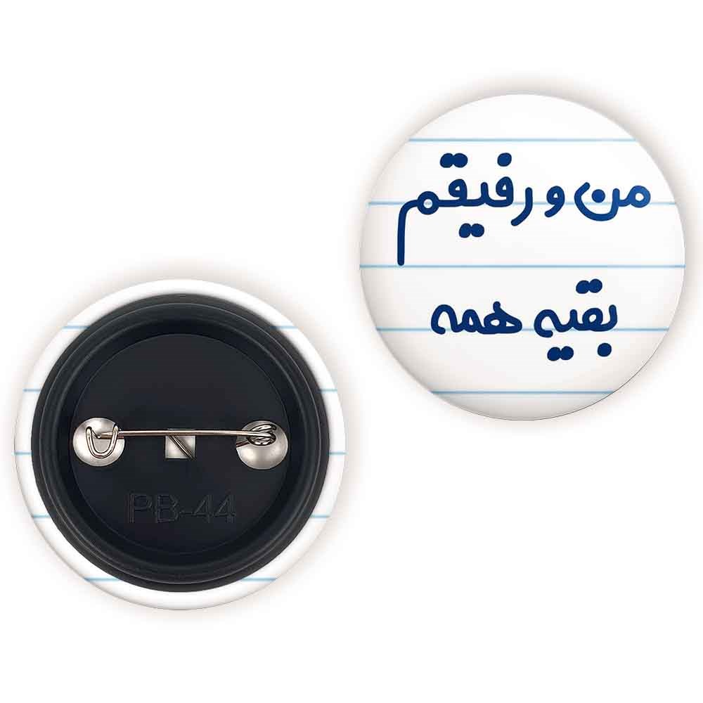 پیکسل 44 میلی متری من و رفیقم بقیه همه خندالو با روکش سلفون حرارتی مات مخملی ضدخش و قطعه پشتی رنگی تولید شده است. قطعات پلاستیکی پشت پیکسل با سوزن یک تکه ثابت و بدون لغزش و جا به جایی، ایستایی بسیار بهتری نسبت به پشتی فلزی پیکسل دارند که این مهم در تولید این محصول نیز رعایت شده است. چاپ پیکسل من و رفیقم بقیه همه نیز با دستگاه های استاندارد و با بهترین سطح کیفی صورت گرفته و طرح با شفافیتی مثال زدنی و با سلفونی بدون شکست نور بر روی پیکسل نقش بسته است. همچنین بسته بندی جذاب و مینیمال پیکسل من و رفیقم بقیه همه ، آنها را مناسب هدیه کرده است.