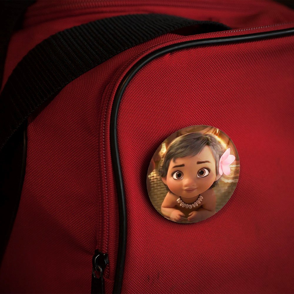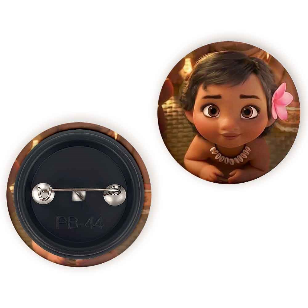 پیکسل 44 میلی متری موآنا Moana خندالو با روکش سلفون حرارتی مات مخملی ضدخش و قطعه پشتی رنگی تولید شده است.پلاستیکی پشت پیکسل با سوزن یک تکه ثابت و بدون لغزش و جا به جایی، ایستایی بسیار بهتری نسبت به پشتی فلزی پیکسل دارند که این مهم در تولید این محصول نیز رعایت شده است.