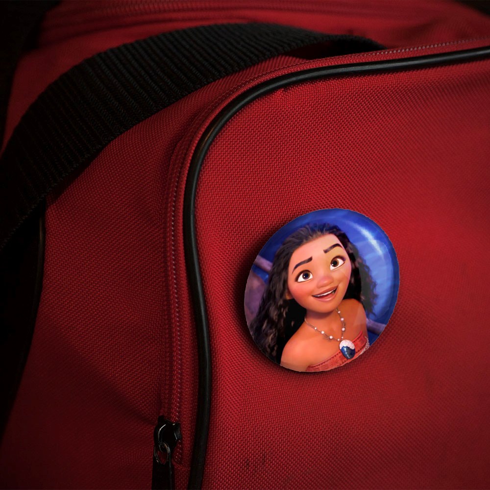 پیکسل 44 میلی متری موآنا Moana خندالو با روکش سلفون حرارتی مات مخملی ضدخش و قطعه پشتی رنگی تولید شده است.پلاستیکی پشت پیکسل با سوزن یک تکه ثابت و بدون لغزش و جا به جایی، ایستایی بسیار بهتری نسبت به پشتی فلزی پیکسل دارند که این مهم در تولید این محصول نیز رعایت شده است.