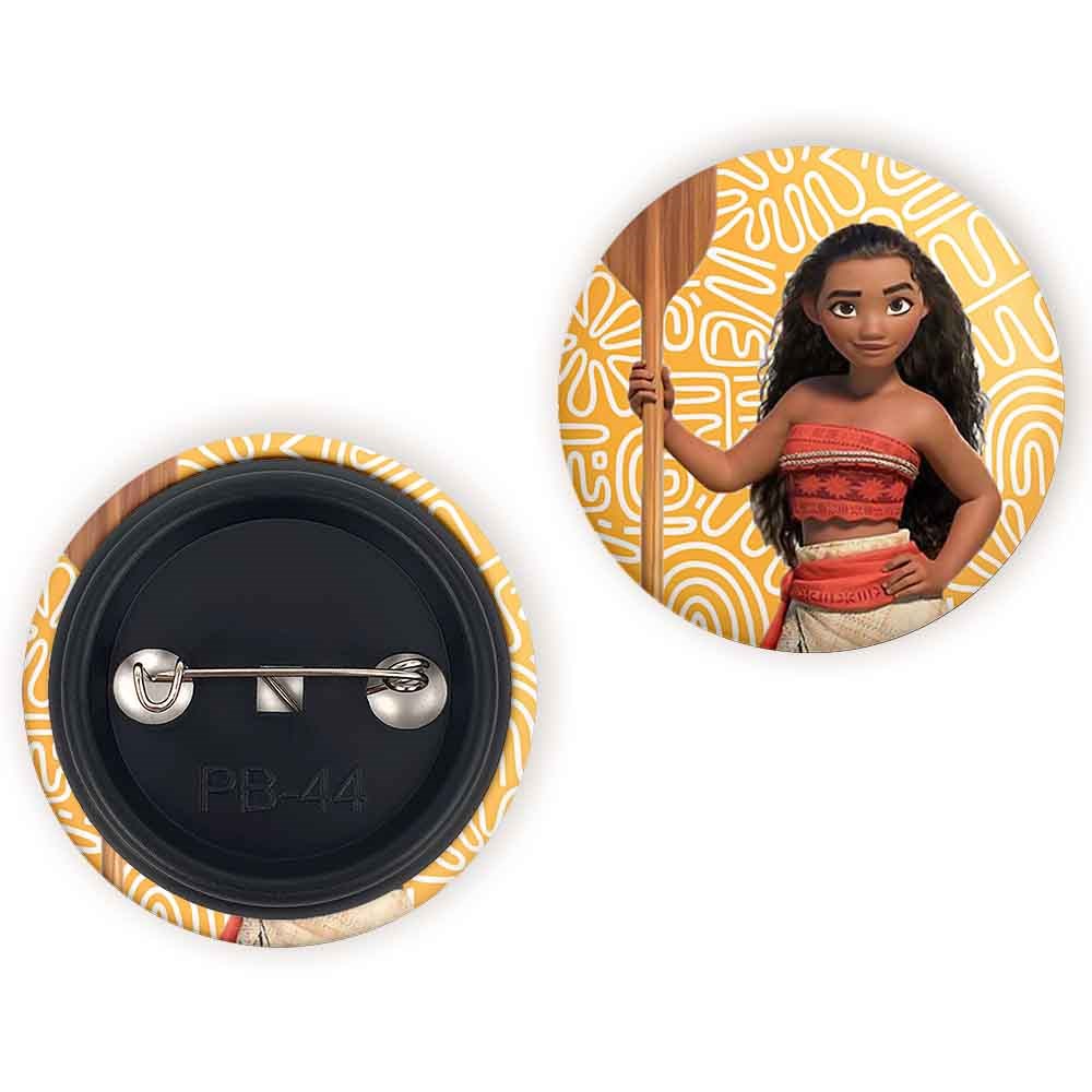 پیکسل 44 میلی متری موآنا Moana خندالو با روکش سلفون حرارتی مات مخملی ضدخش و قطعه پشتی رنگی تولید شده است.پلاستیکی پشت پیکسل با سوزن یک تکه ثابت و بدون لغزش و جا به جایی، ایستایی بسیار بهتری نسبت به پشتی فلزی پیکسل دارند که این مهم در تولید این محصول نیز رعایت شده است.